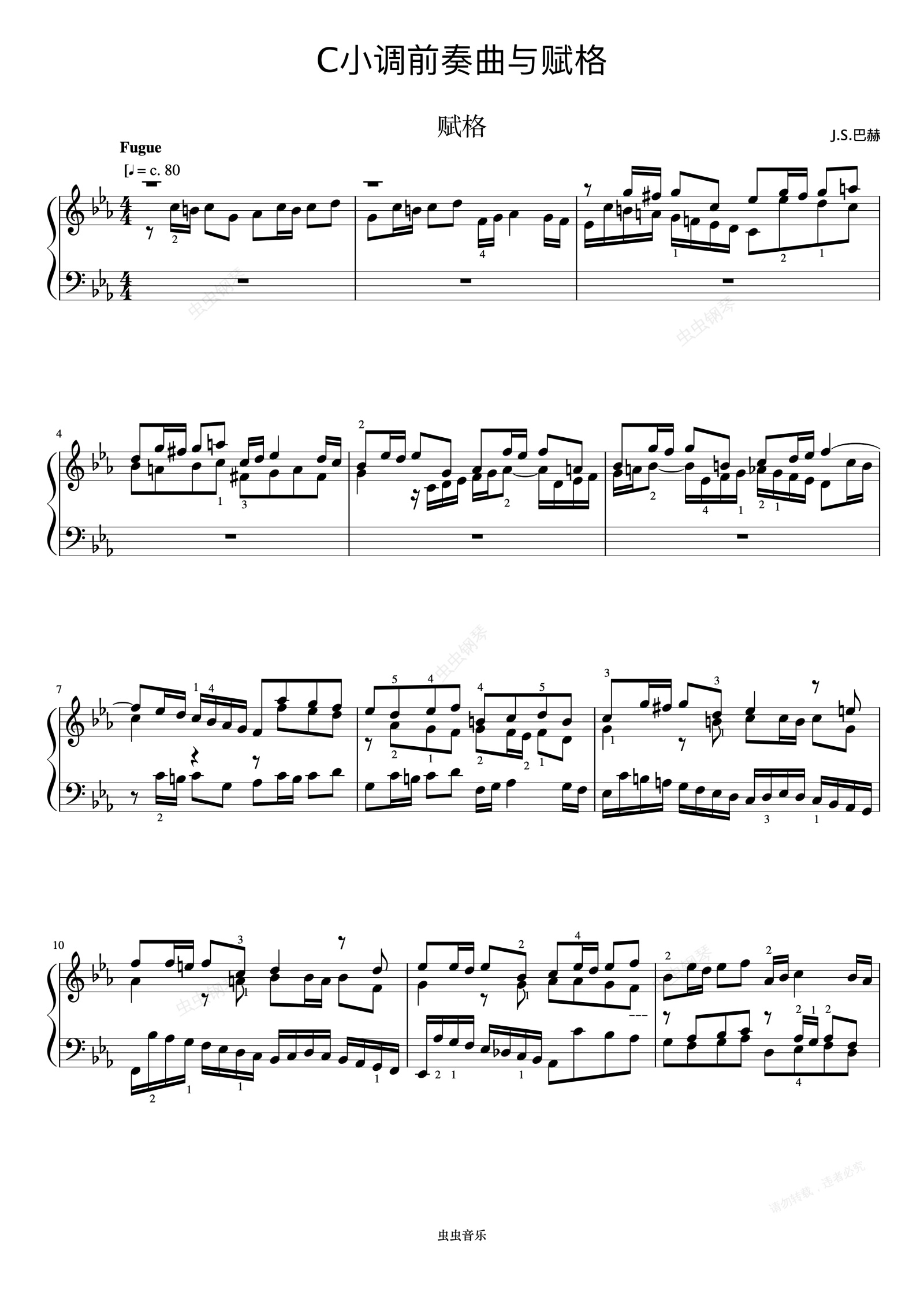 钢琴谱:8级 C小调前奏曲与赋格-2《英皇钢琴考级曲目(2015-2016)》