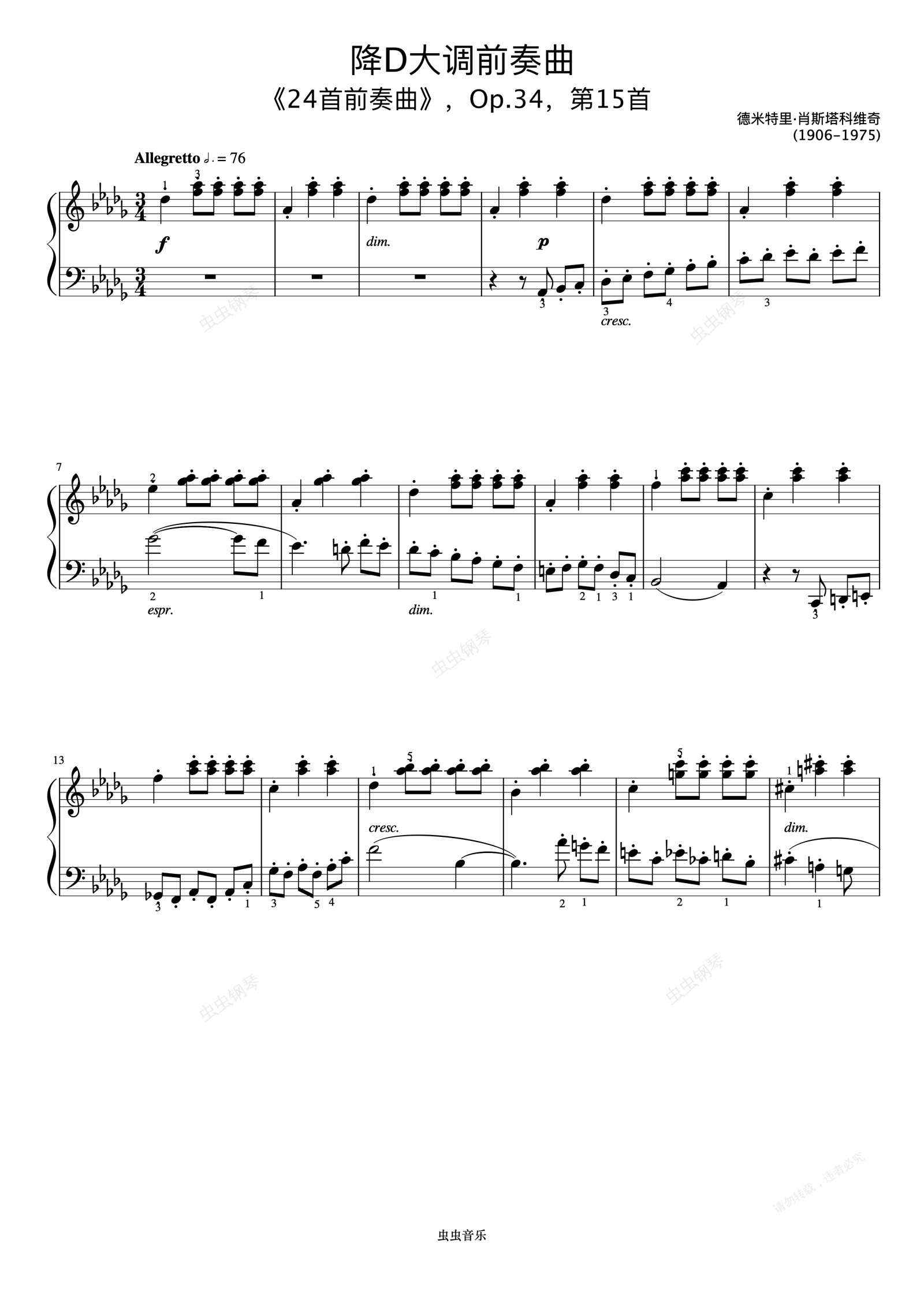 钢琴谱:7级 降D大调前奏曲《英皇钢琴考级曲目(2015-2016)》