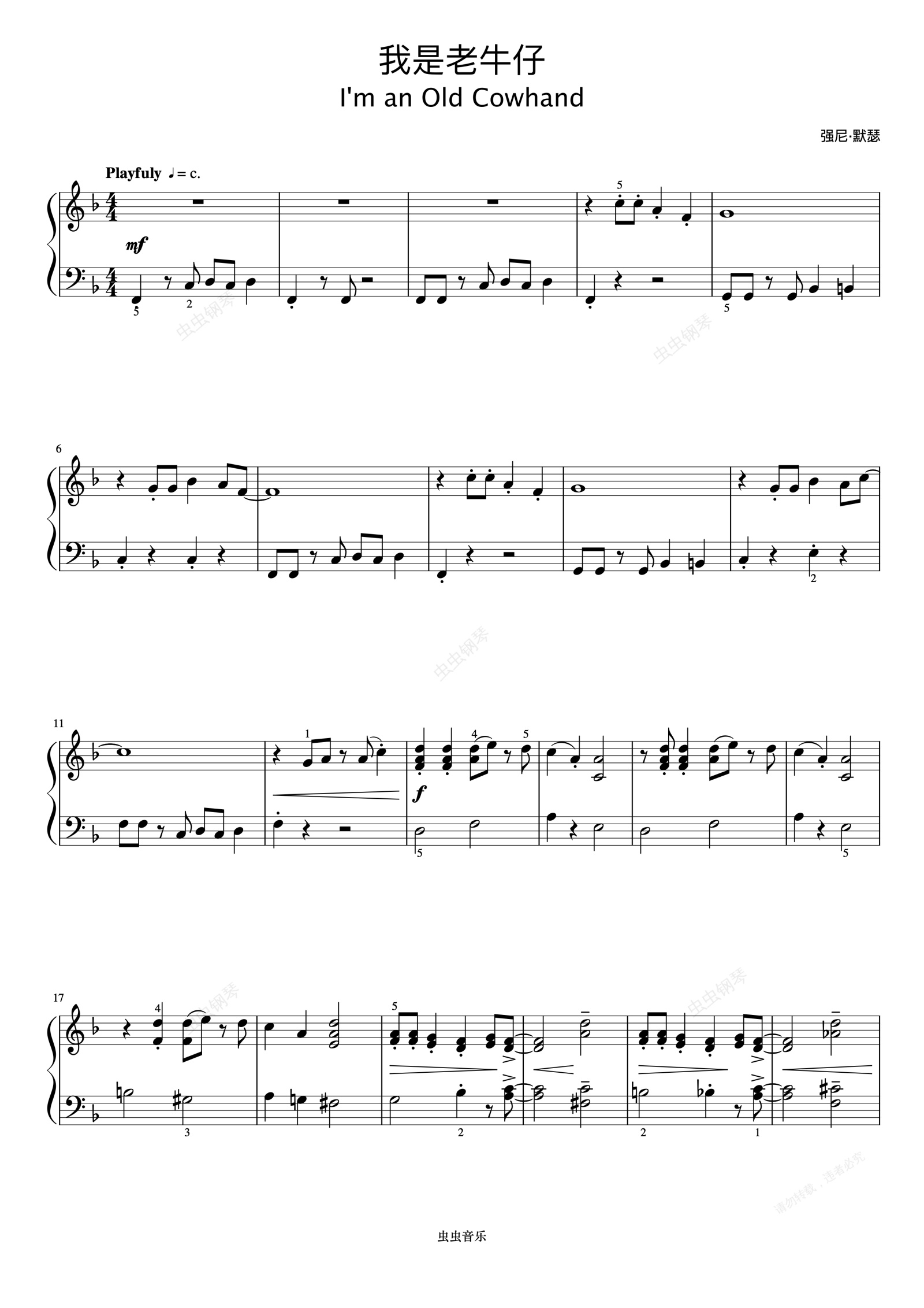 钢琴谱:2级 我是老牛仔《英皇钢琴考级曲目(2015-2016)》