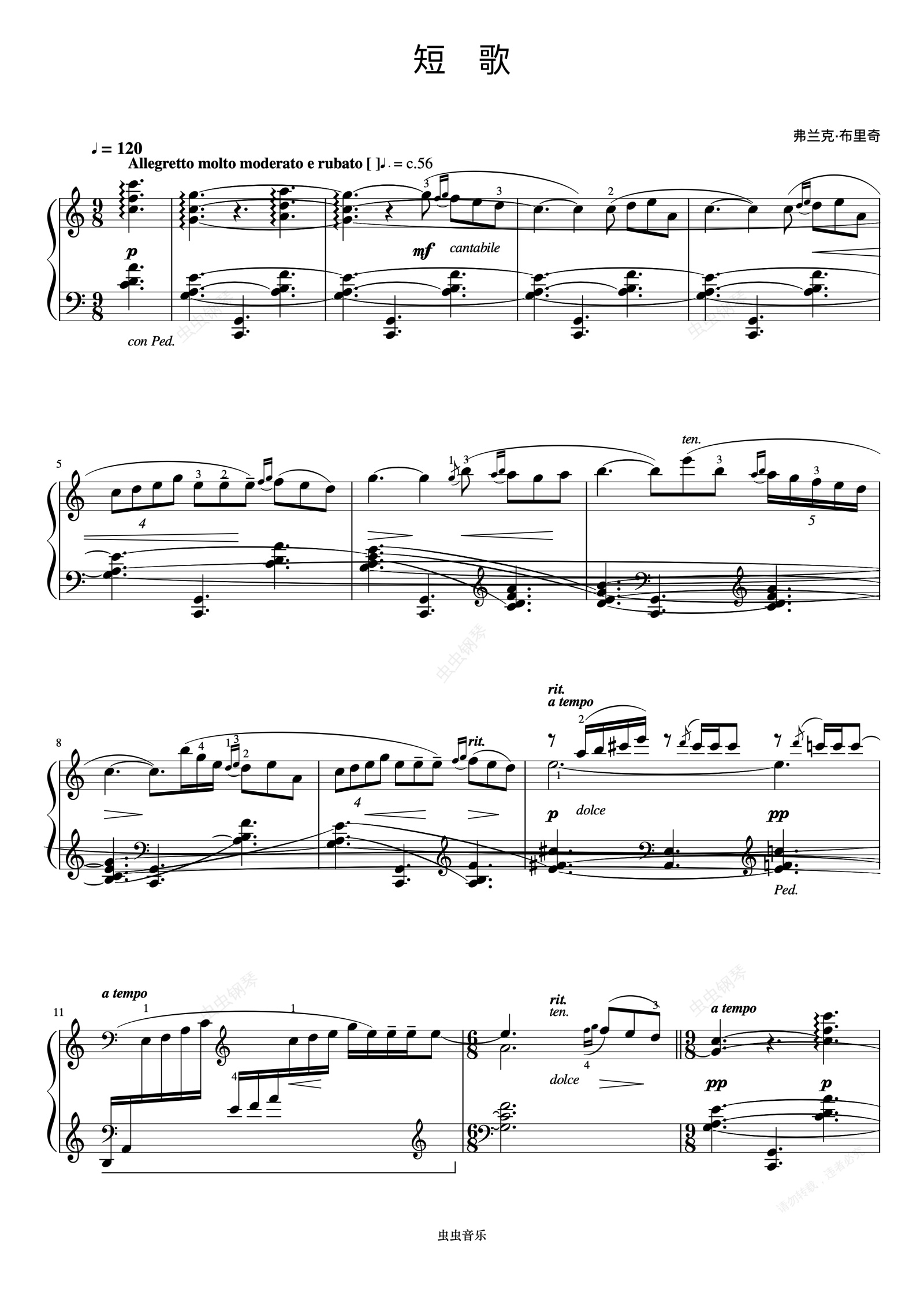 钢琴谱:8级 短歌《英皇钢琴考级曲目(2015-2016)》