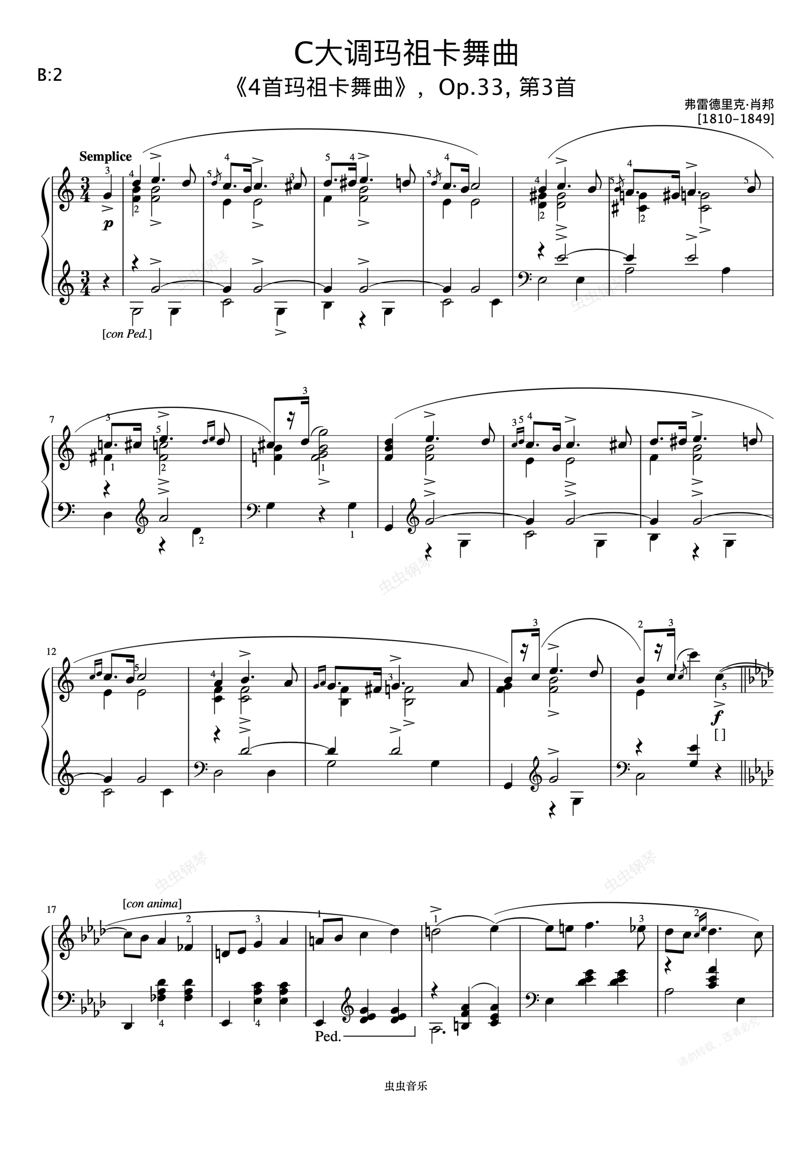 钢琴谱:6级 C大调玛祖卡舞曲《英皇钢琴考级曲目(2015-2016)》