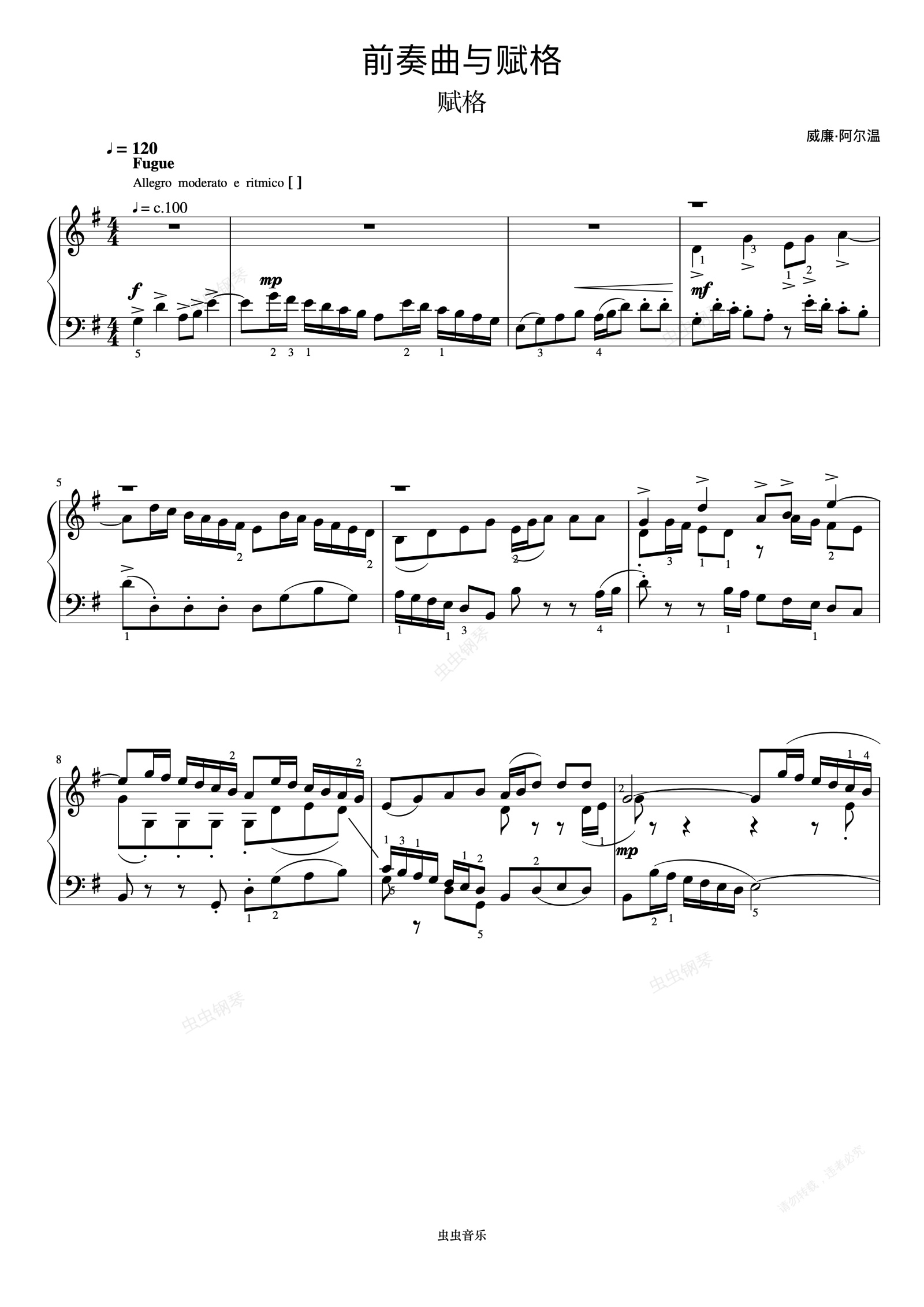 钢琴谱:8级 前奏曲与赋格-2《英皇钢琴考级曲目(2015-2016)》
