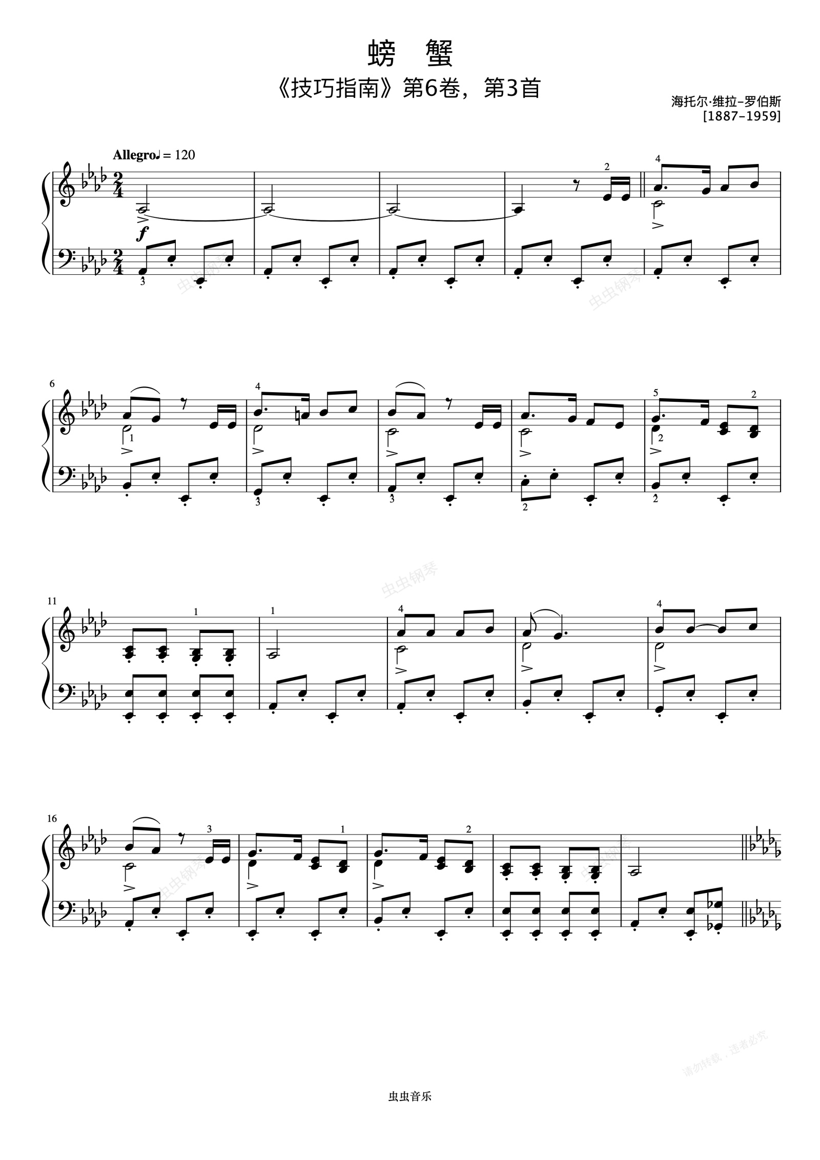 钢琴谱:6级 螃蟹《英皇钢琴考级曲目(2015-2016)》