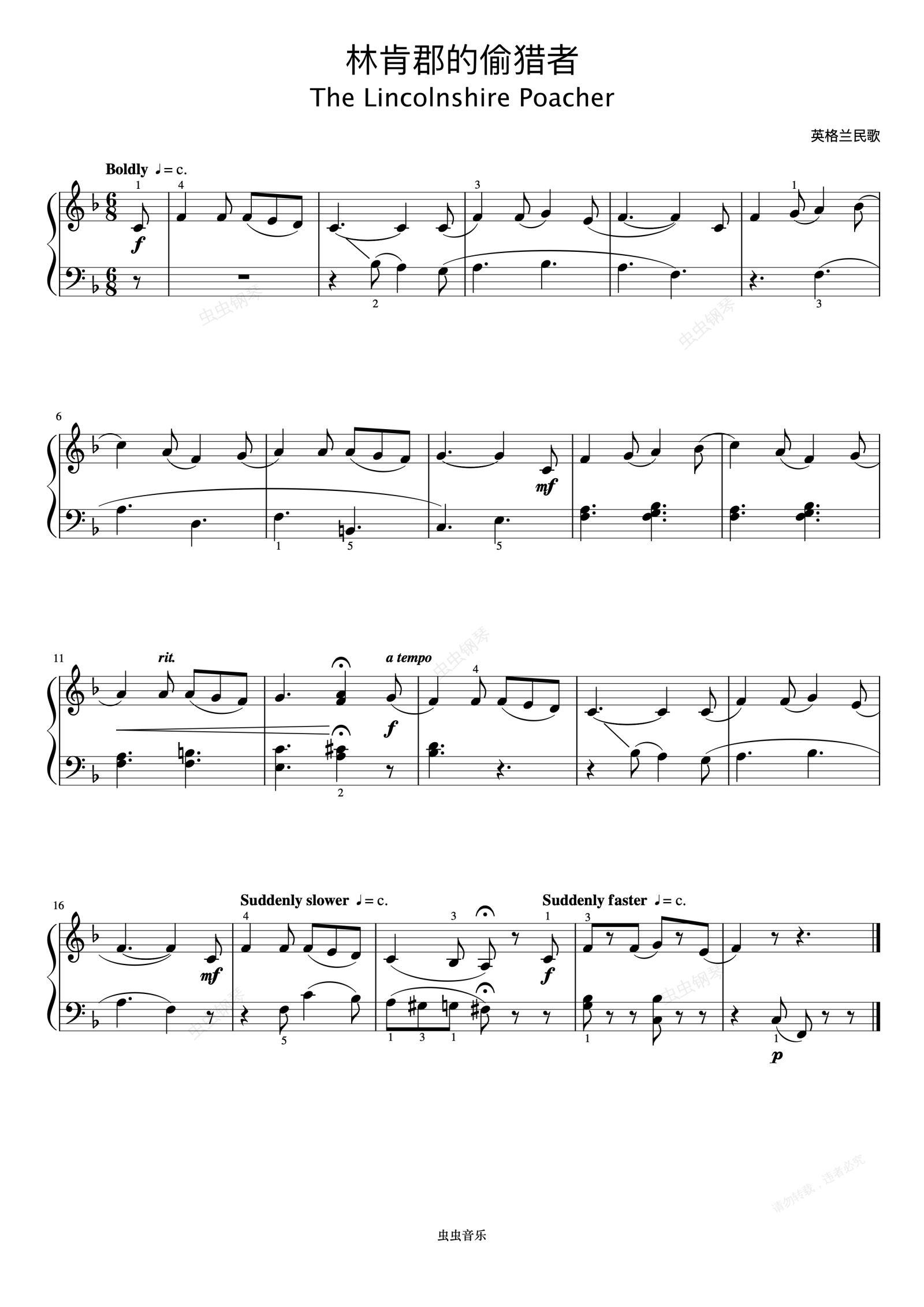 钢琴谱:1级 林肯郡的偷猎者《英皇钢琴考级曲目(2015-2016)》