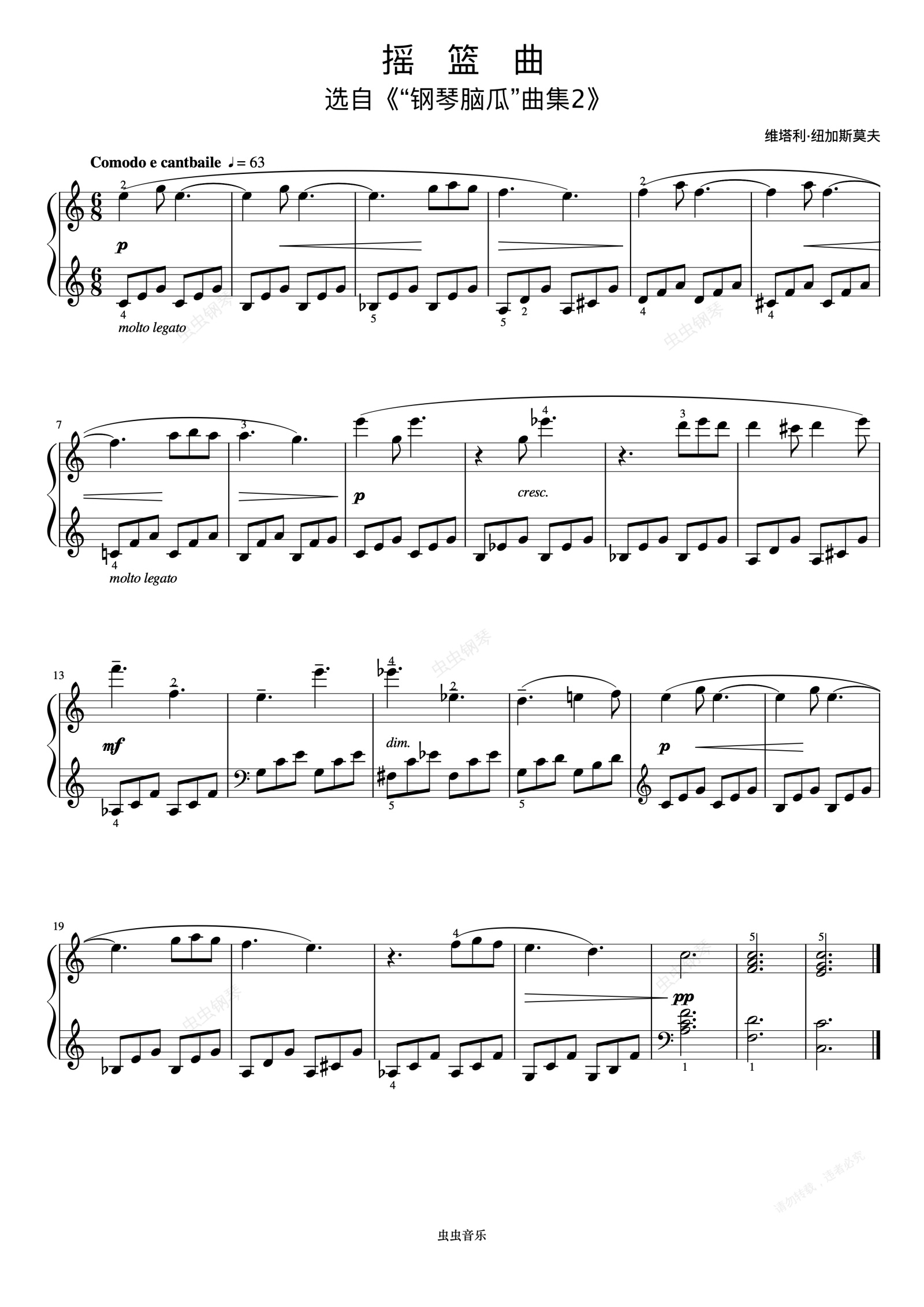 钢琴谱:2级 摇篮曲《英皇钢琴考级曲目(2015-2016)》
