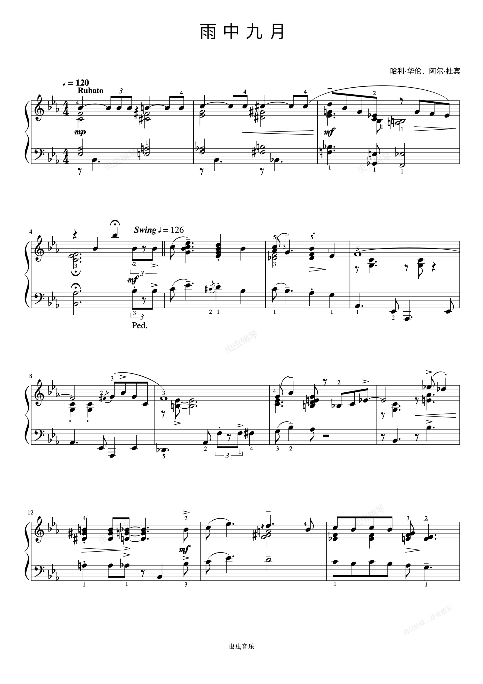 钢琴谱:8级 雨中九月《英皇钢琴考级曲目(2015-2016)》