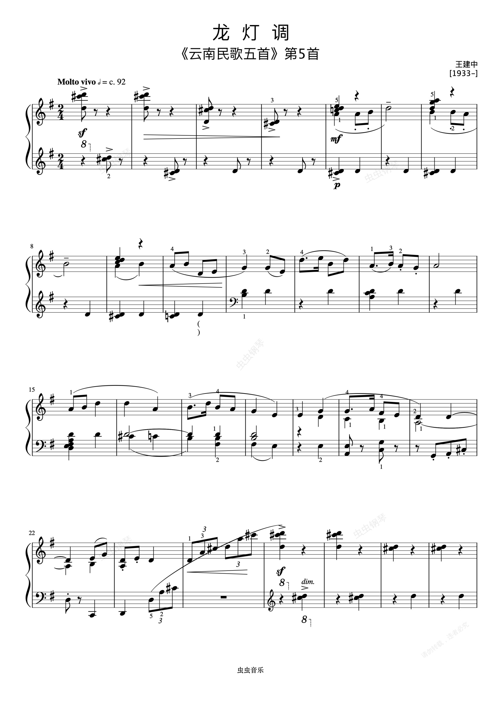 钢琴谱:6级 龙灯调《英皇钢琴考级曲目(2015-2016)》