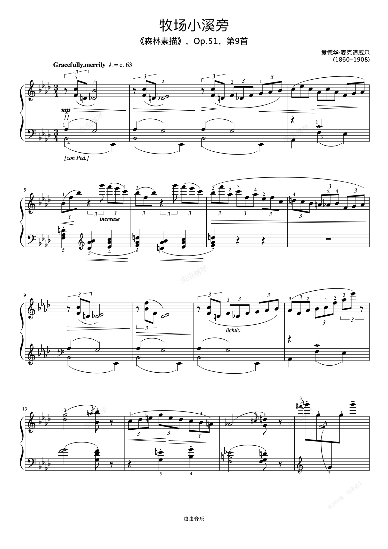 钢琴谱:7级 牧场的小溪旁《英皇钢琴考级曲目(2015-2016)》