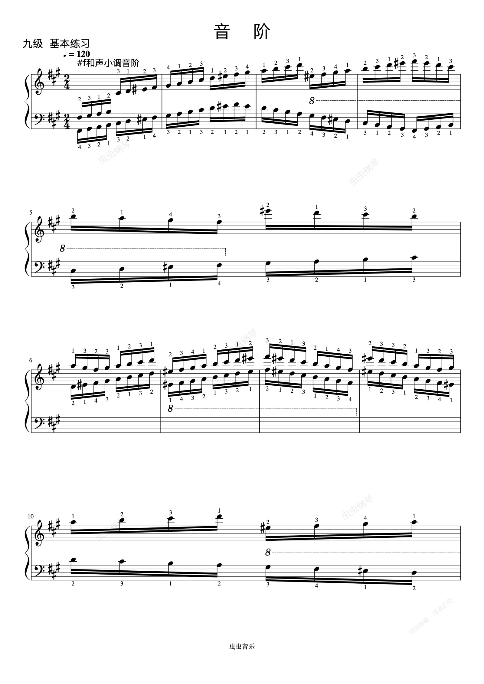 钢琴谱: 升f和声小调音阶《 ZYY 钢琴考级曲目 7》