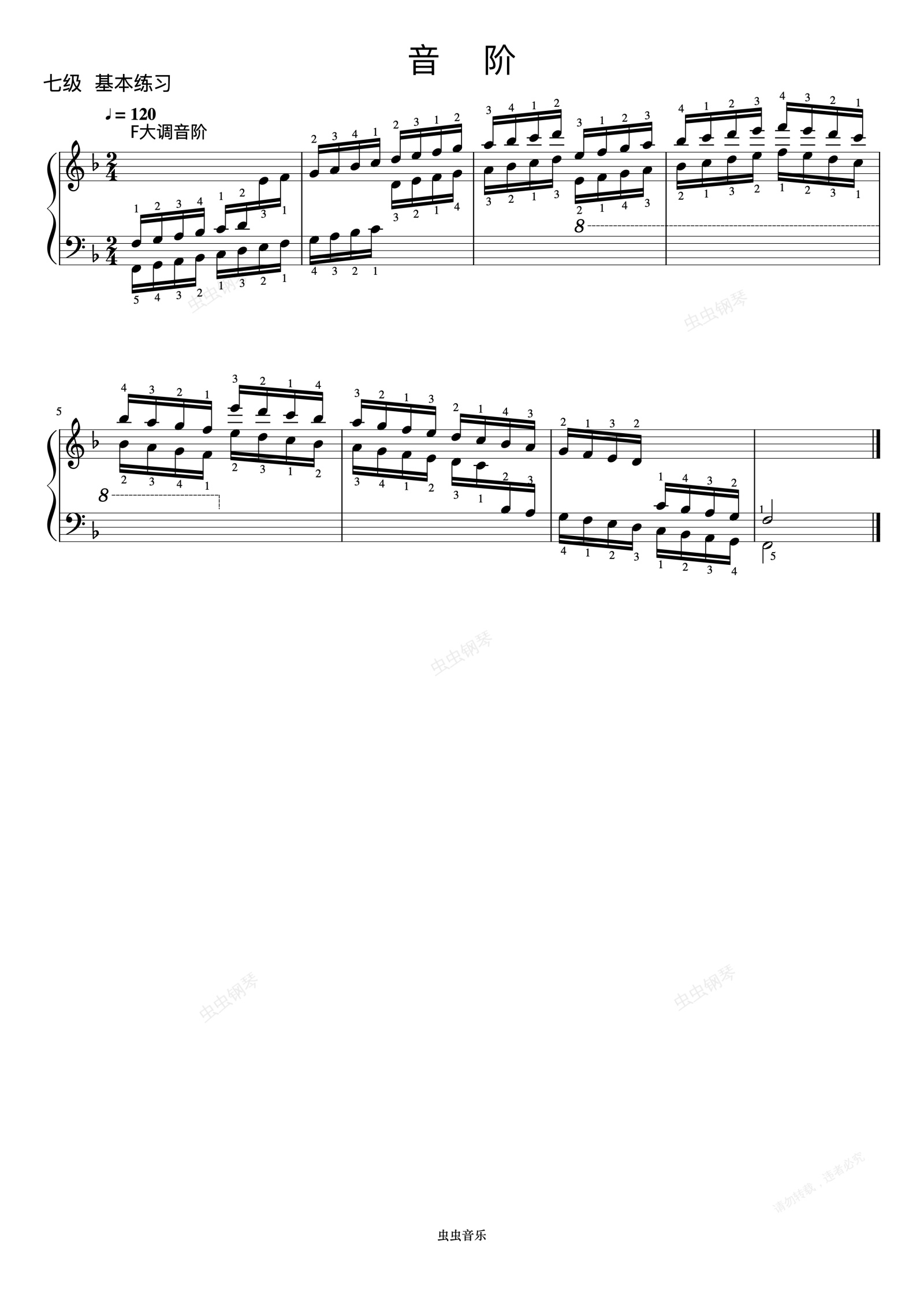 钢琴谱: F大调音阶《 ZYY 钢琴考级曲目 7》