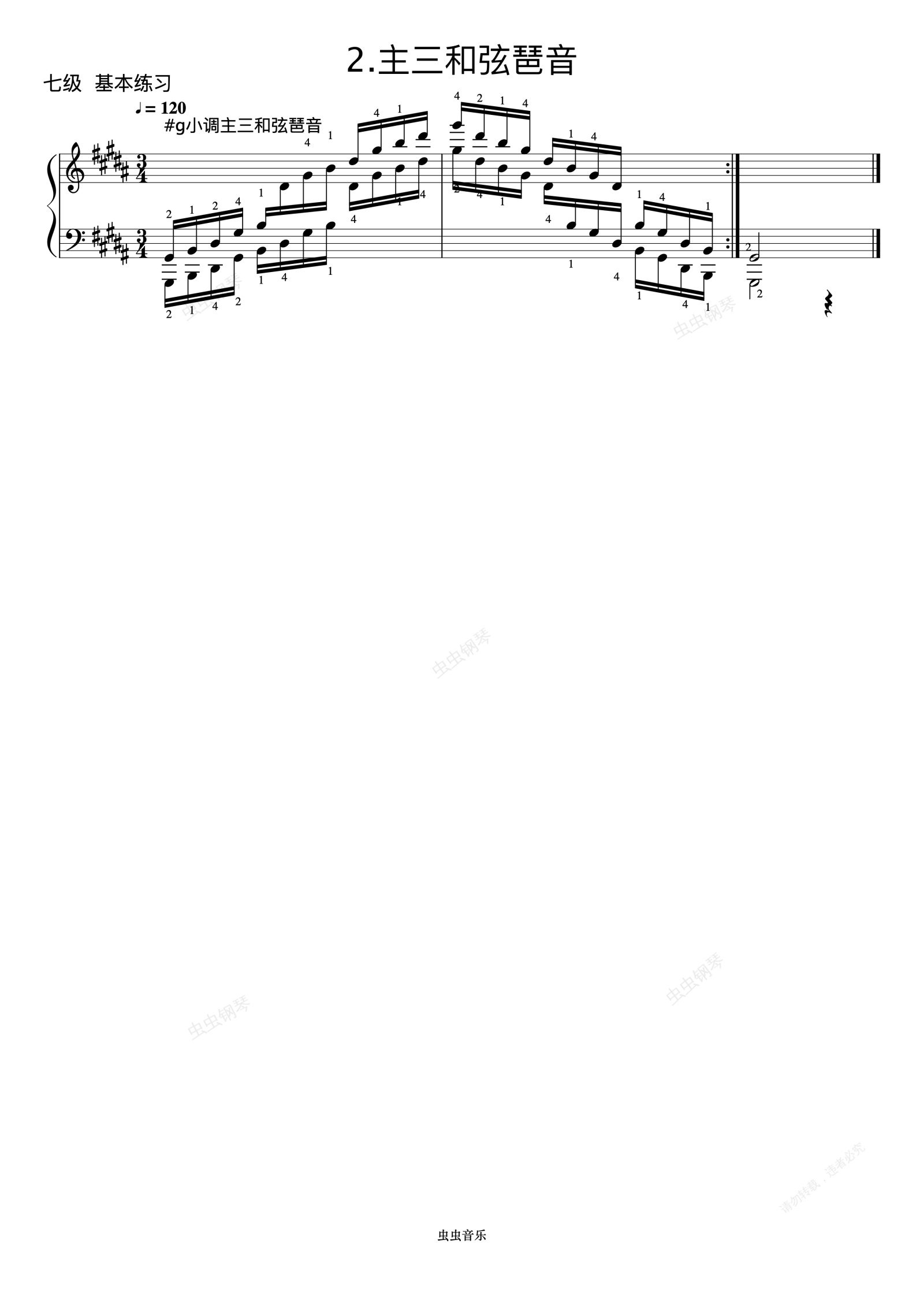 钢琴谱: 升g小调主三和弦琶音《 ZYY 钢琴考级曲目 7》