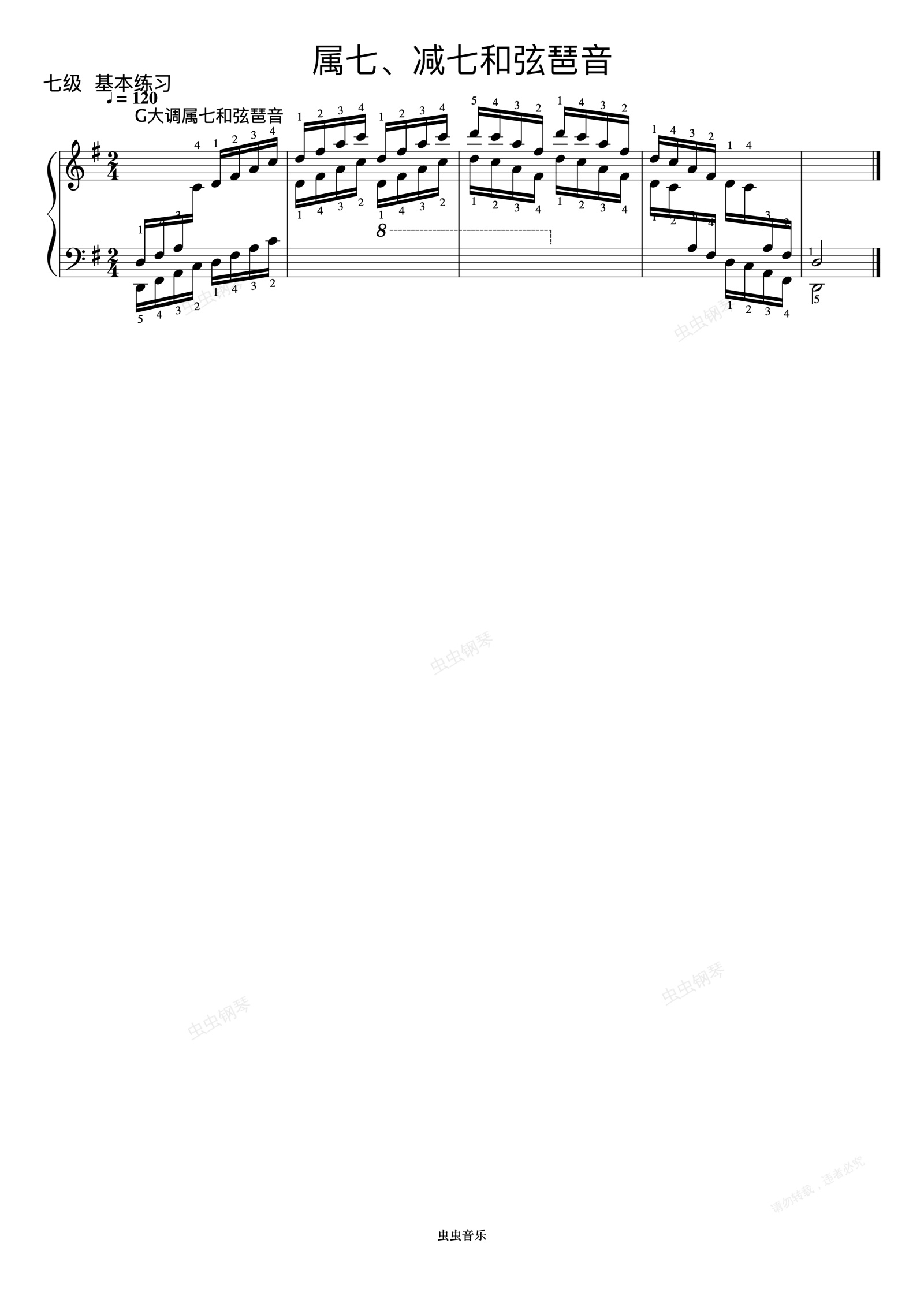 钢琴谱: G大调属七和弦琶音《 ZYY 钢琴考级曲目 7》