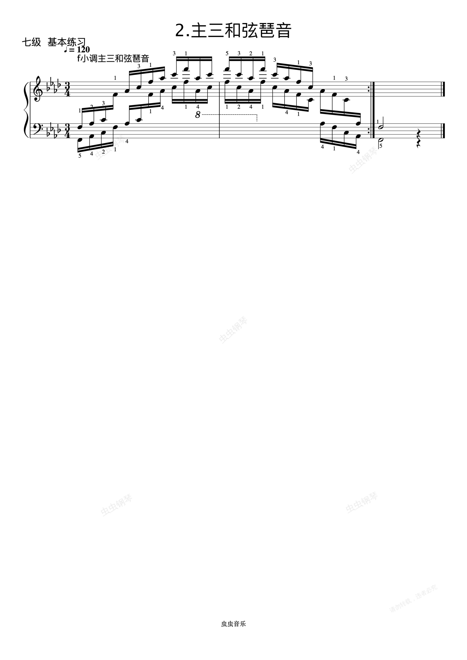 钢琴谱: f小调主三和弦琶音《 ZYY 钢琴考级曲目 7》