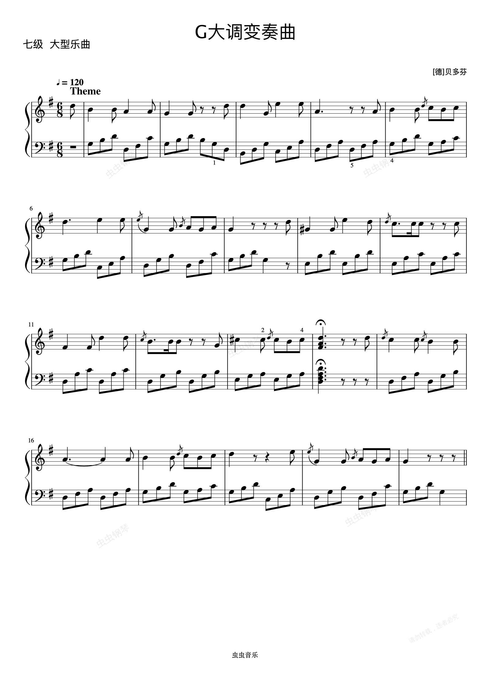 钢琴谱: G大调变奏曲《 ZYY 钢琴考级曲目 7》