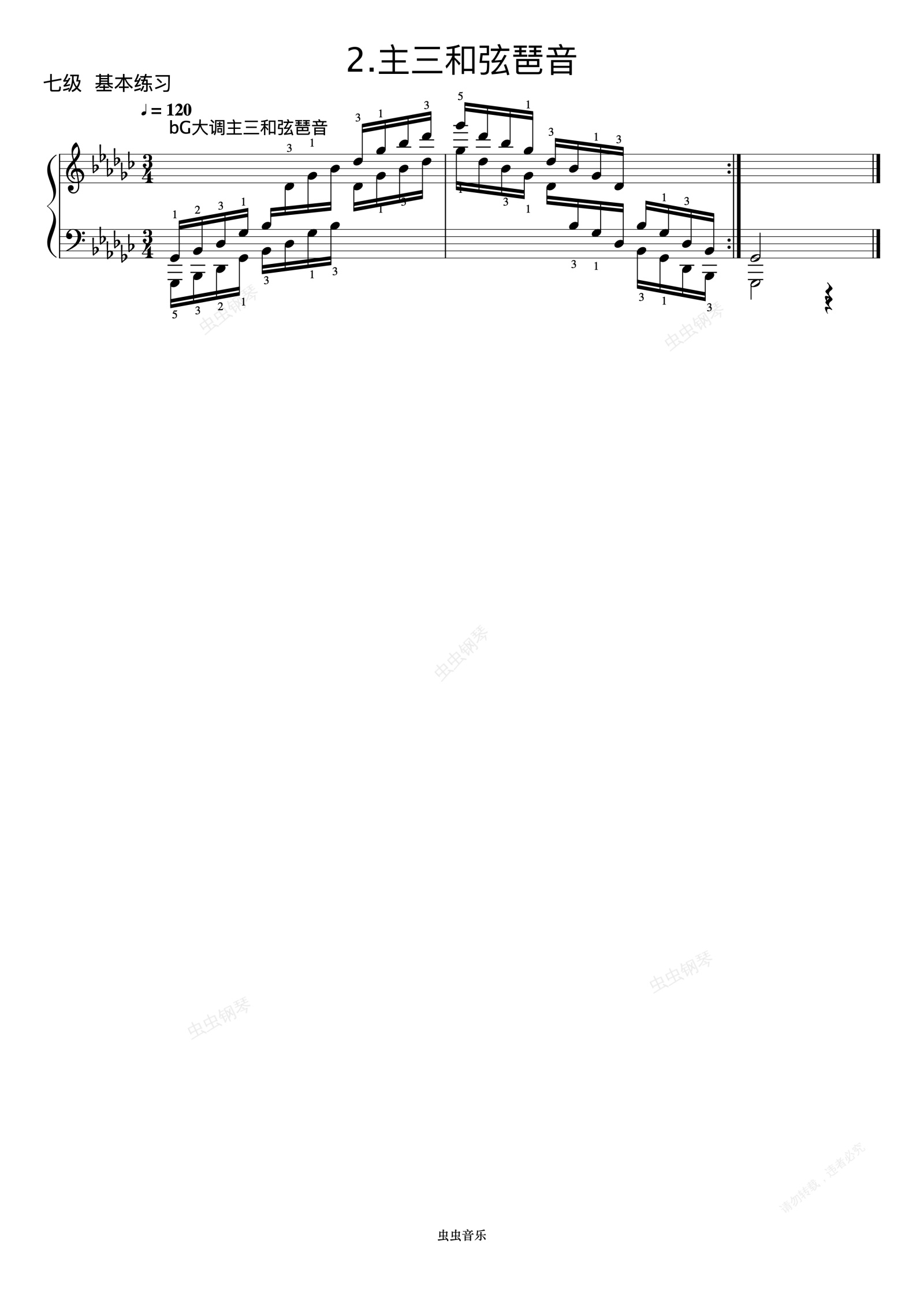 钢琴谱: 降G大调主三和弦琶音《 ZYY 钢琴考级曲目 7》