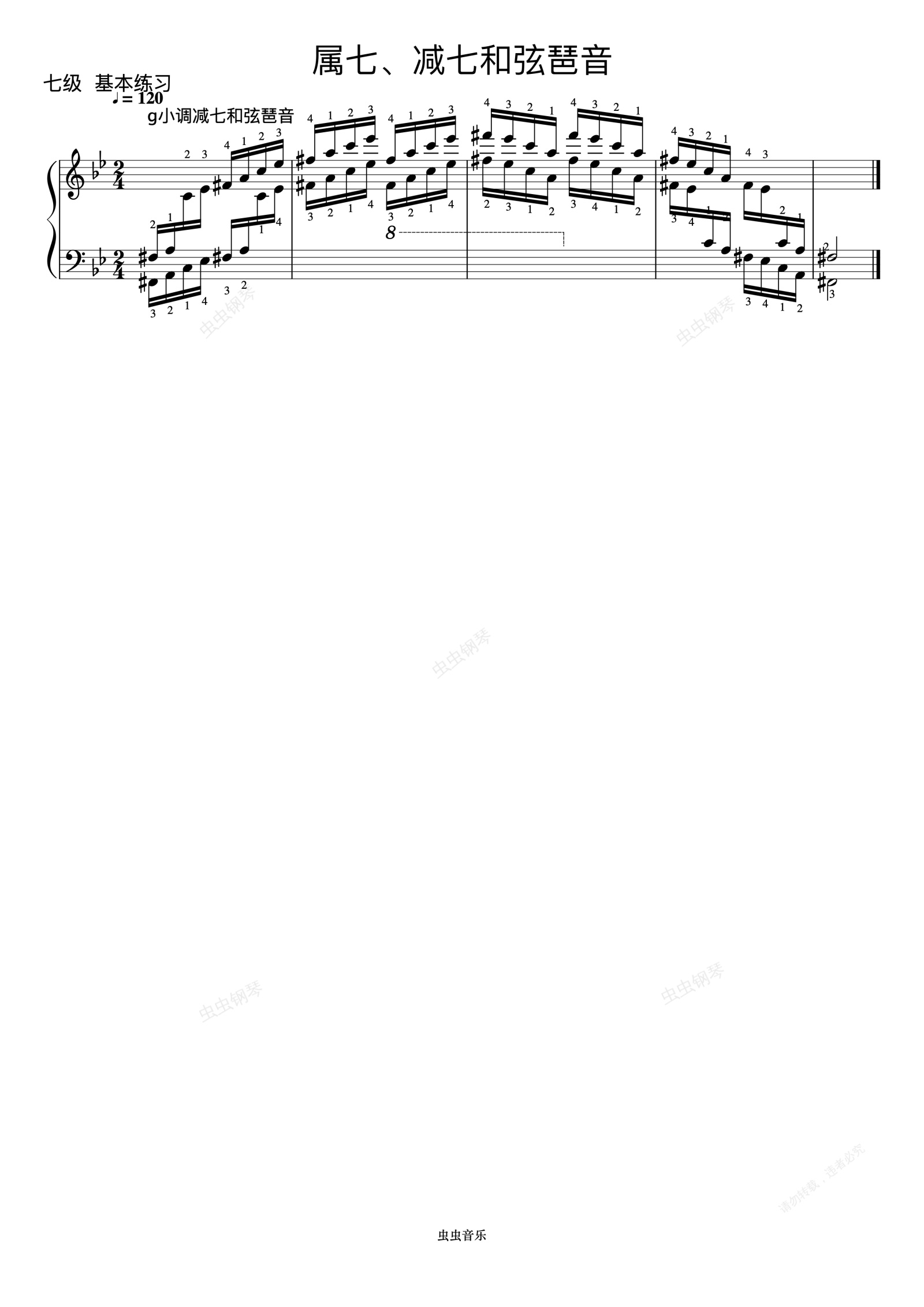 钢琴谱: g小调减七和弦琶音《 ZYY 钢琴考级曲目 7》