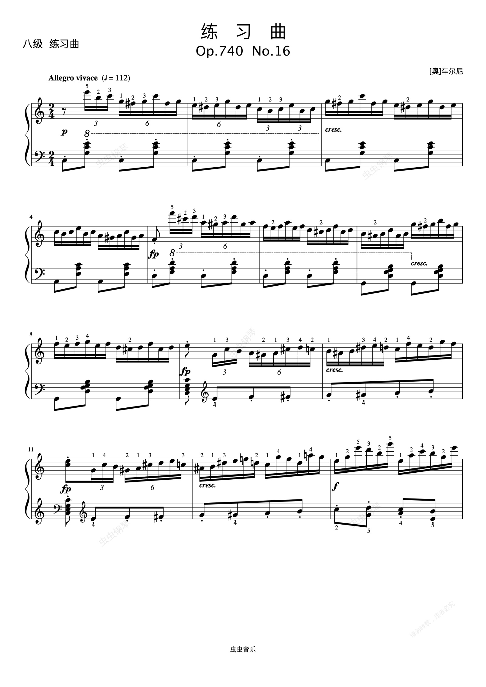 钢琴谱: 练习曲(Op.740 No.16)《 ZYY 钢琴考级曲目 7》