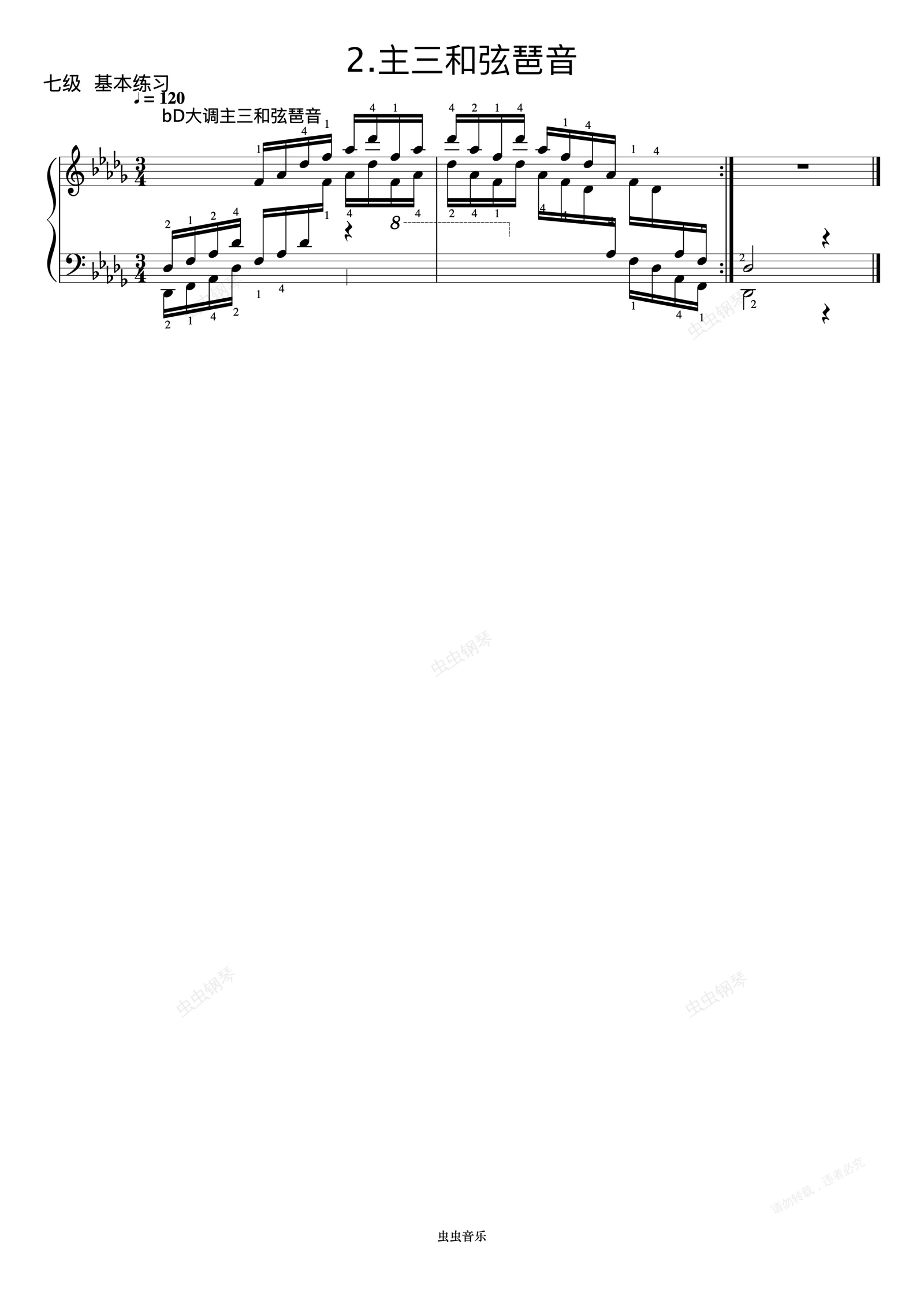 钢琴谱: 降D大调主三和弦琶音《 ZYY 钢琴考级曲目 7》