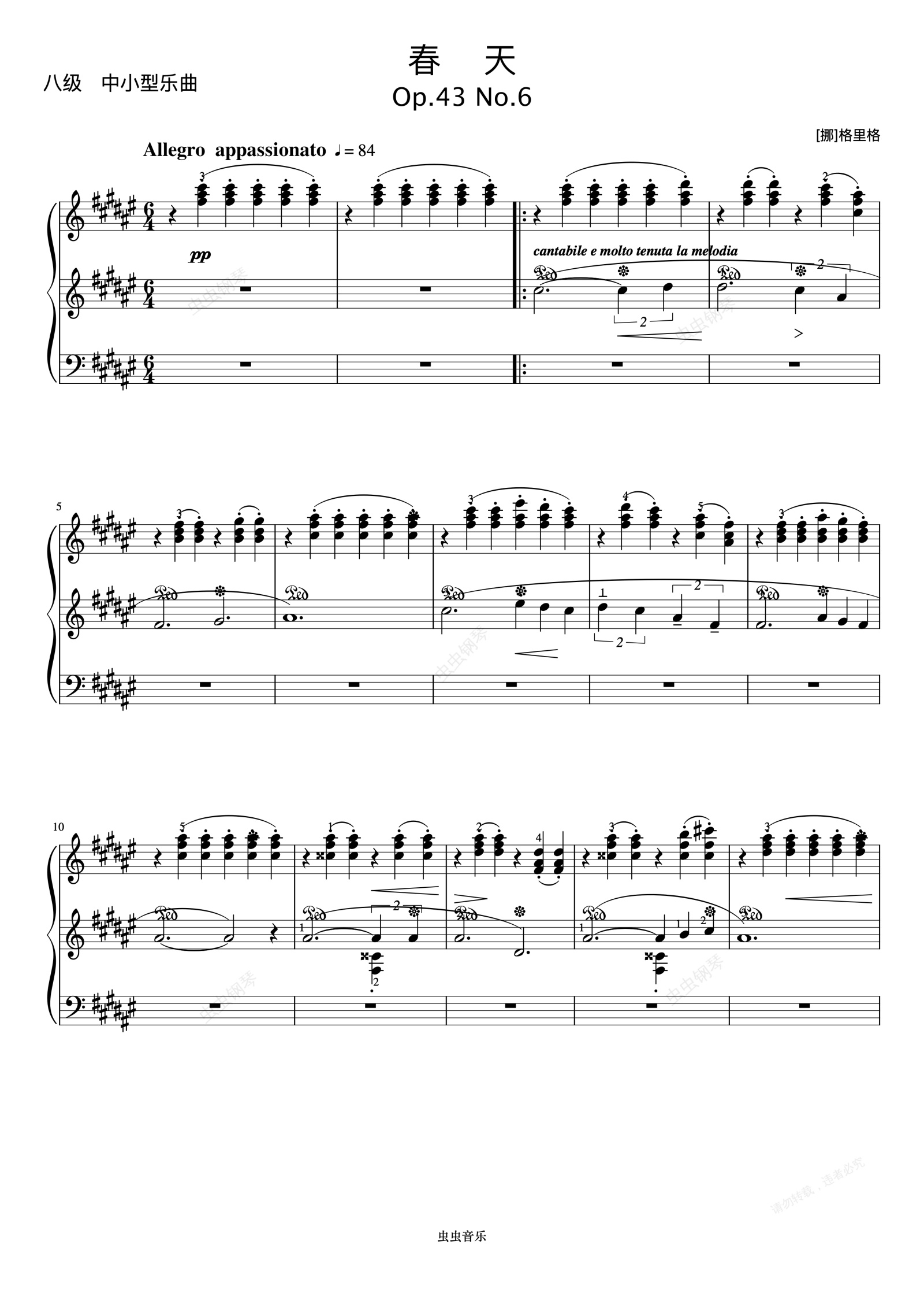 钢琴谱: 春天Op.43 No.6《 ZYY 钢琴考级曲目 7》