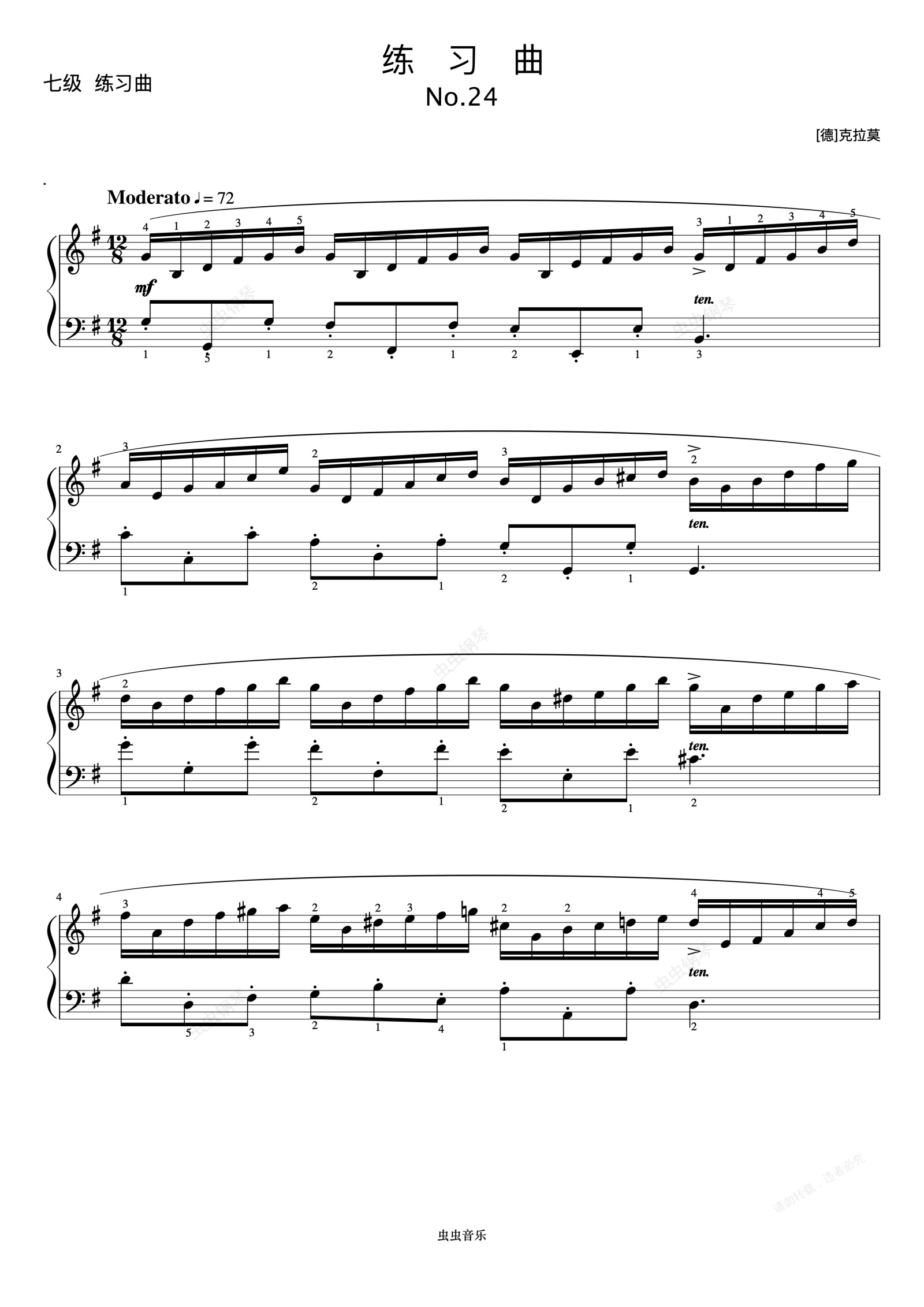 钢琴谱: 练习曲(No.24)《 ZYY 钢琴考级曲目 7》