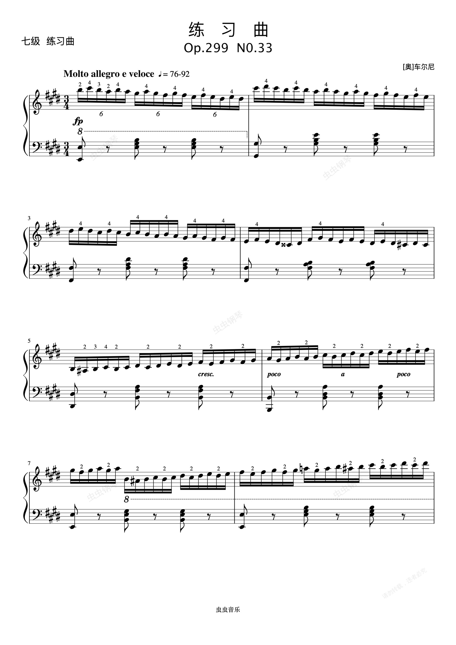 钢琴谱: 练习曲(Op.299 No.33)《 ZYY 钢琴考级曲目 7》