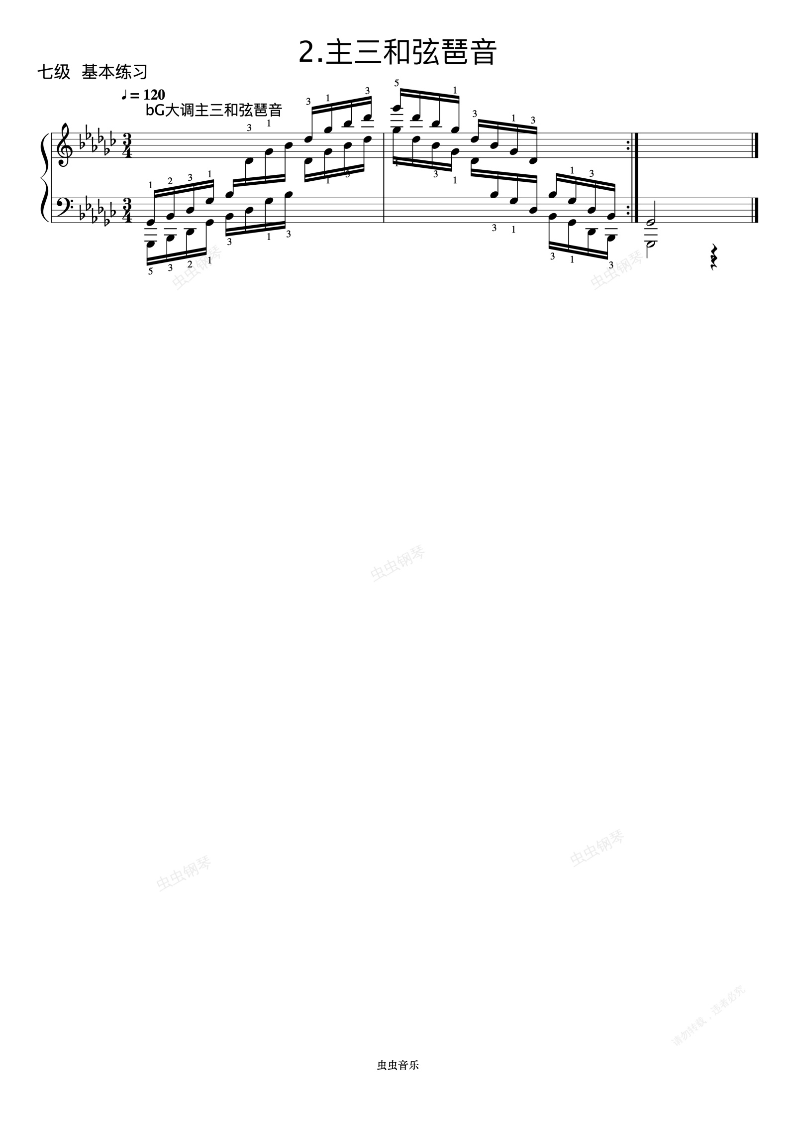 钢琴谱: 降G大调主三和弦琶音《 ZYY 钢琴考级曲目 7》