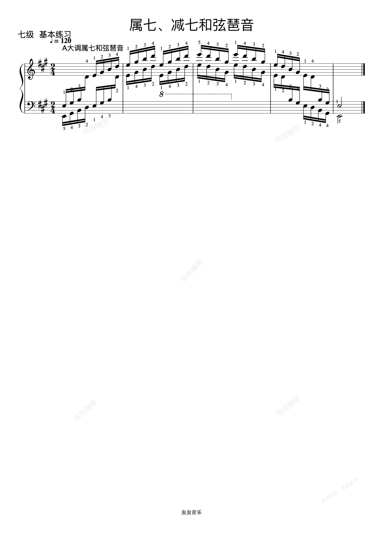 钢琴谱: A大调属七和弦琶音《 ZYY 钢琴考级曲目 7》