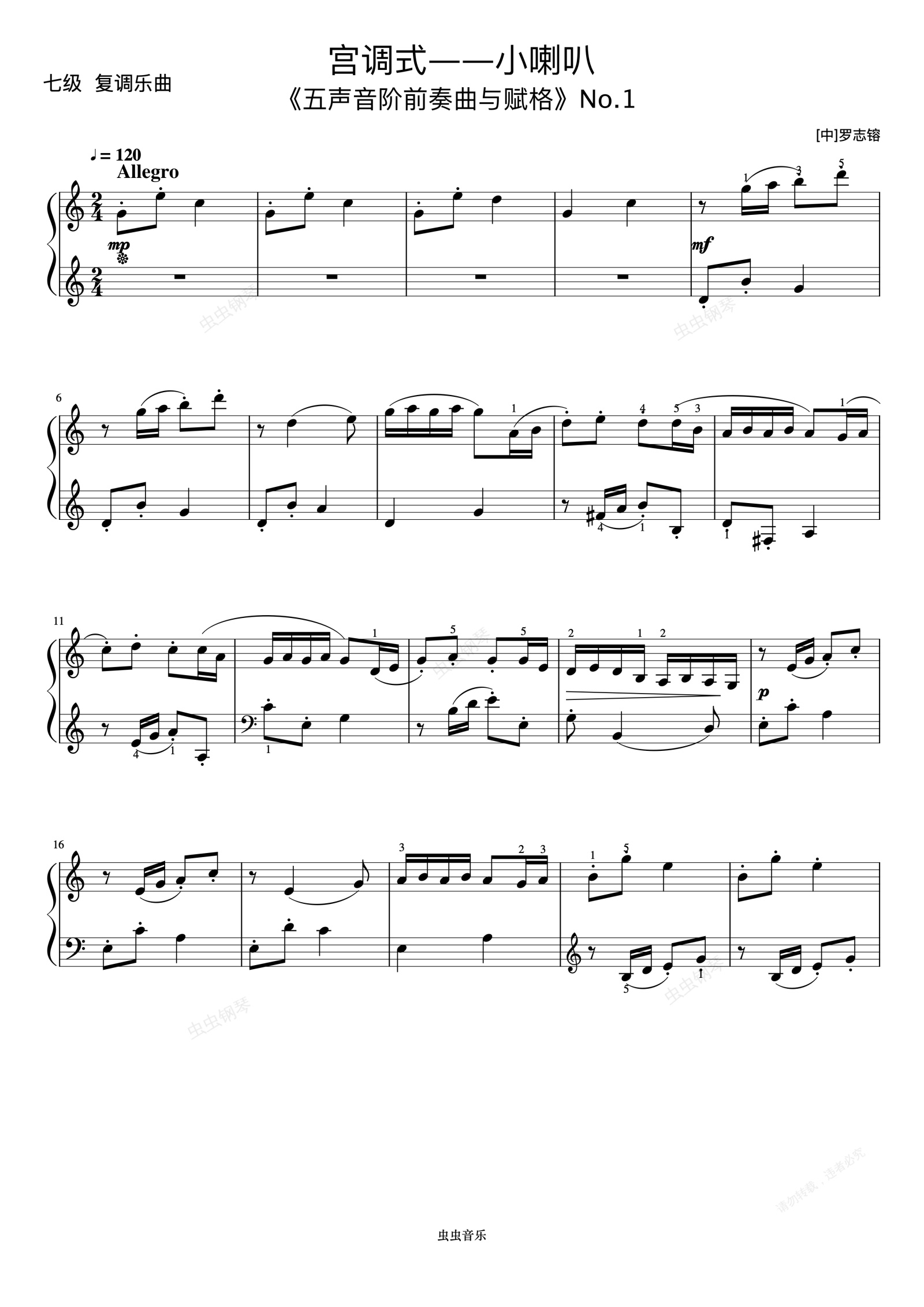 钢琴谱: 宫调式-小喇叭 赋格《 ZYY 钢琴考级曲目 7》
