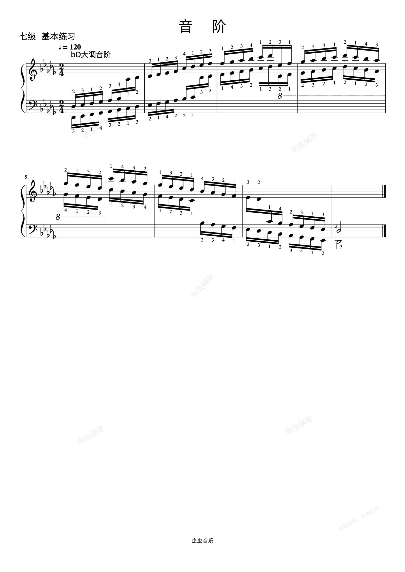 钢琴谱: 降D大调音阶《 ZYY 钢琴考级曲目 7》