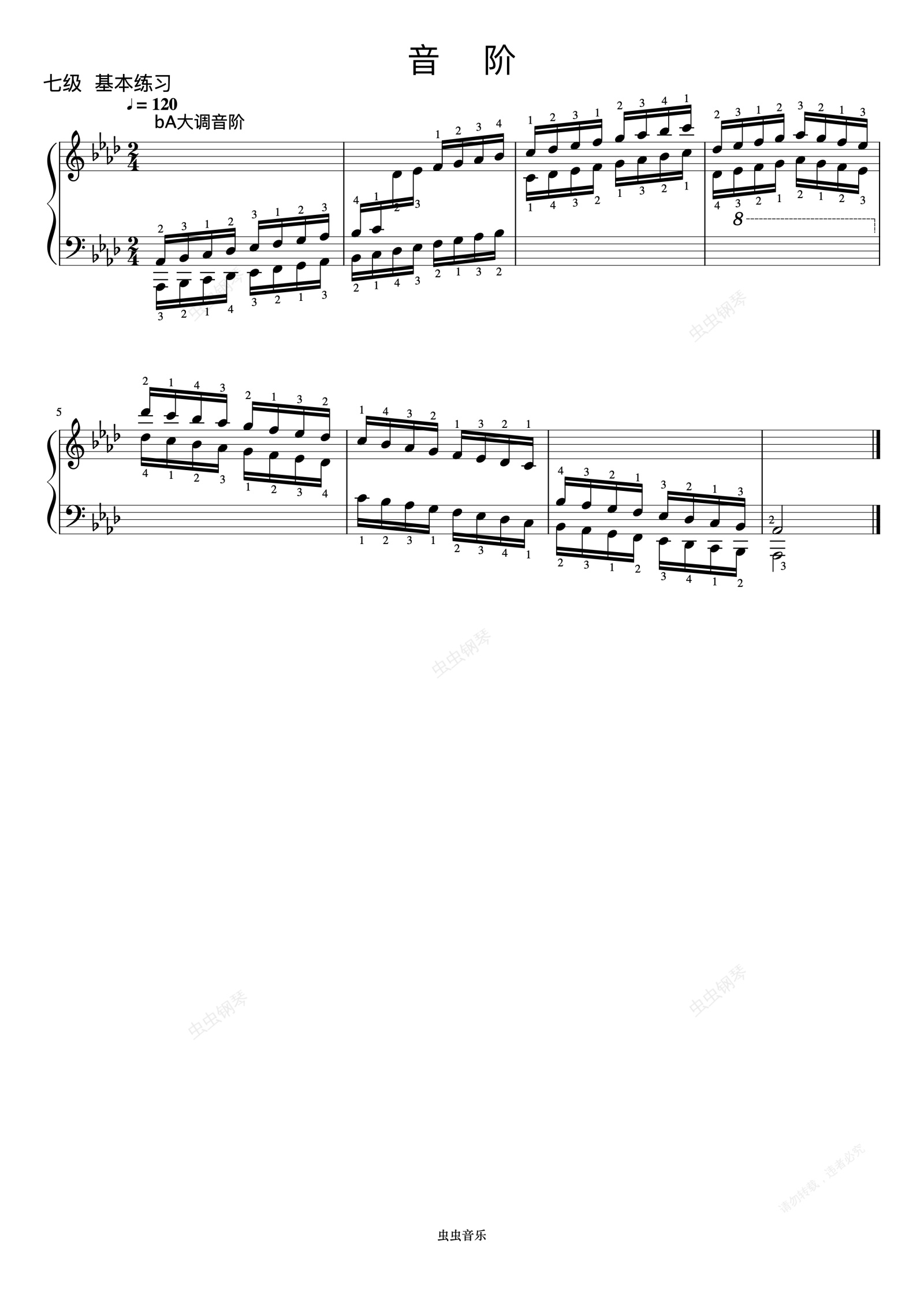 钢琴谱: 降A大调音阶《 ZYY 钢琴考级曲目 7》