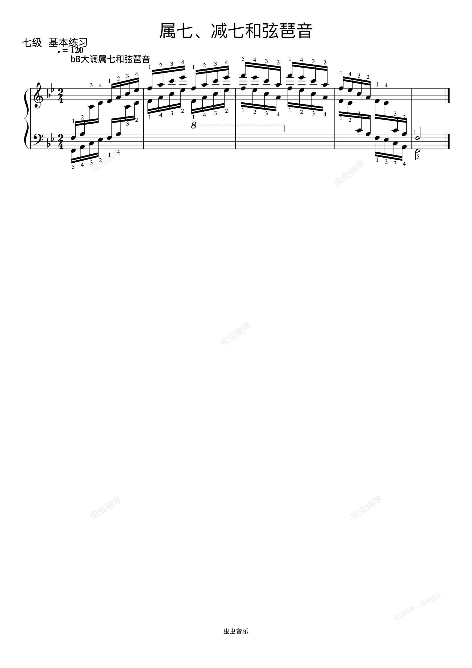 钢琴谱: 降B大调属七和弦琶音《 ZYY 钢琴考级曲目 7》