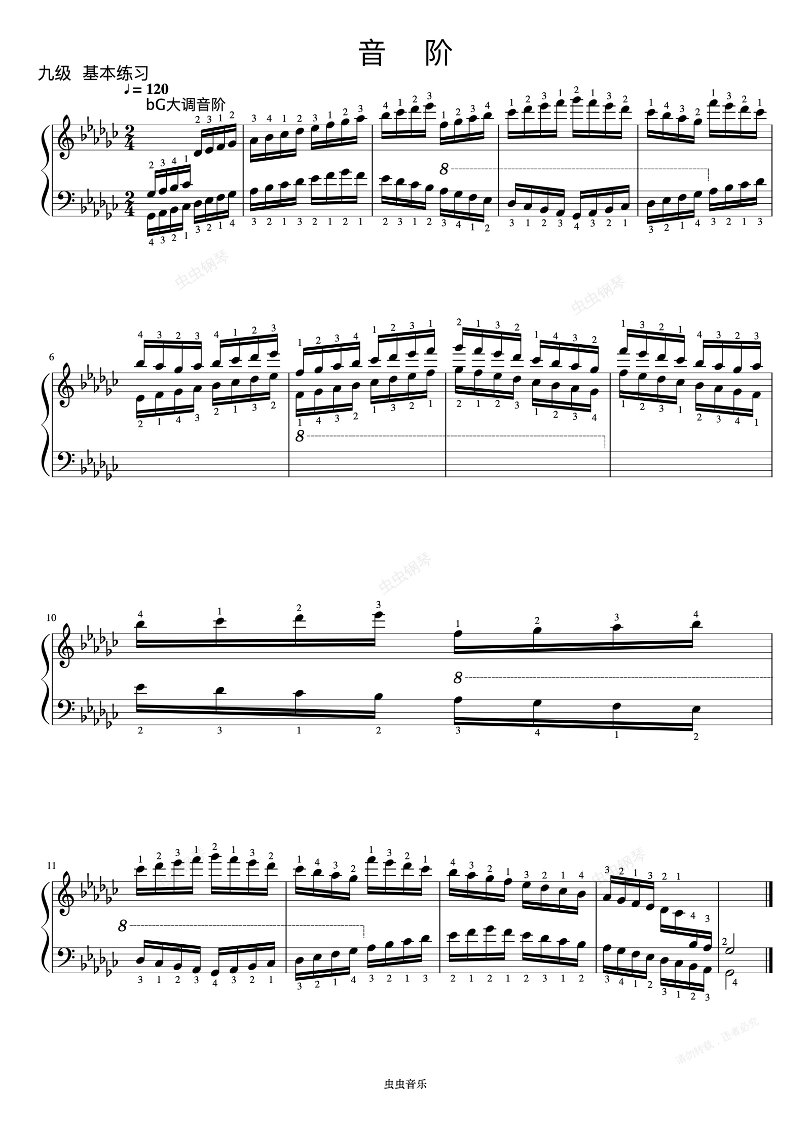 钢琴谱: 降G大调音阶《 ZYY 钢琴考级曲目 7》