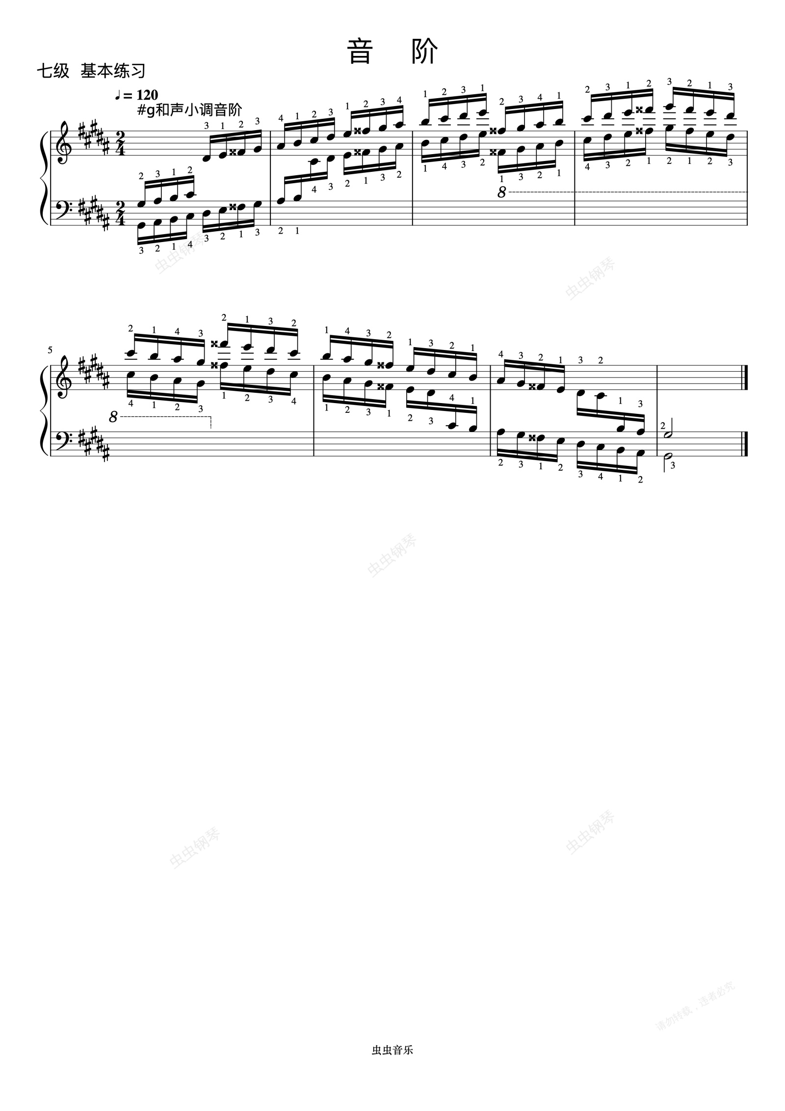 钢琴谱: 升g和声小调音阶《 ZYY 钢琴考级曲目 7》