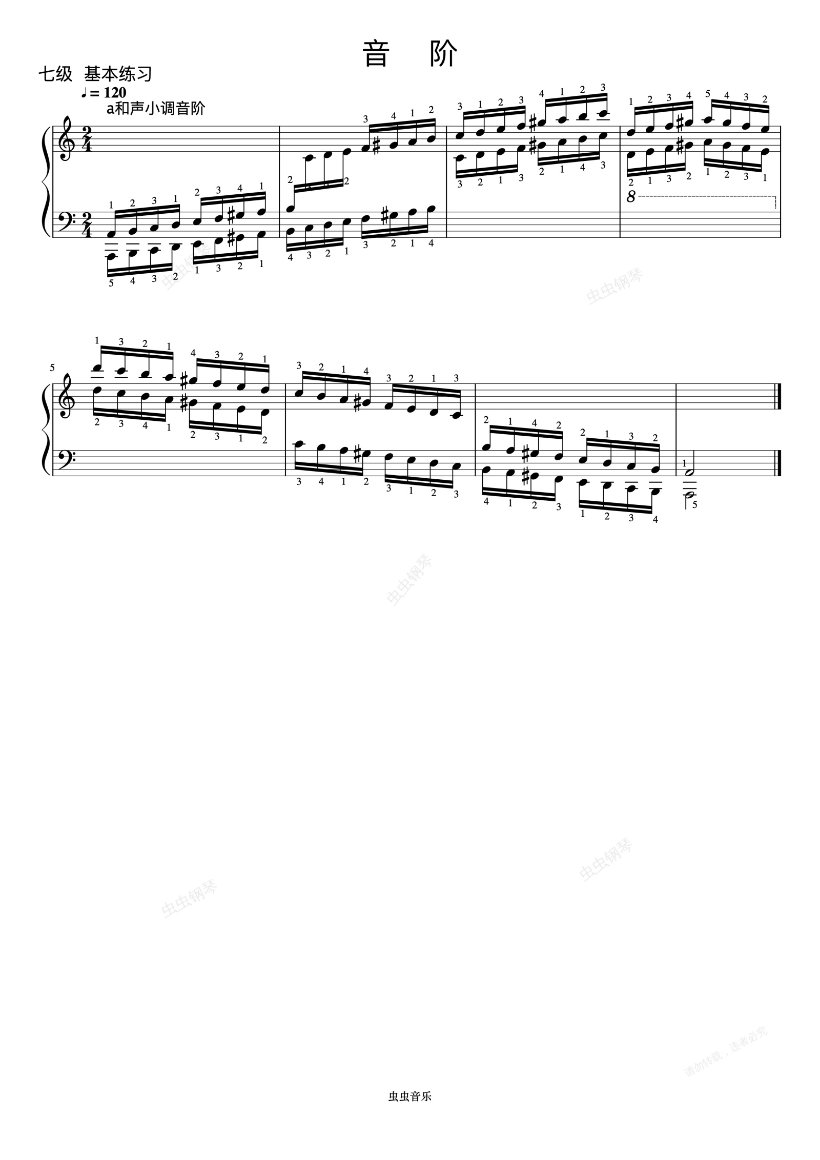 钢琴谱: a和声小调音阶《 ZYY 钢琴考级曲目 7》