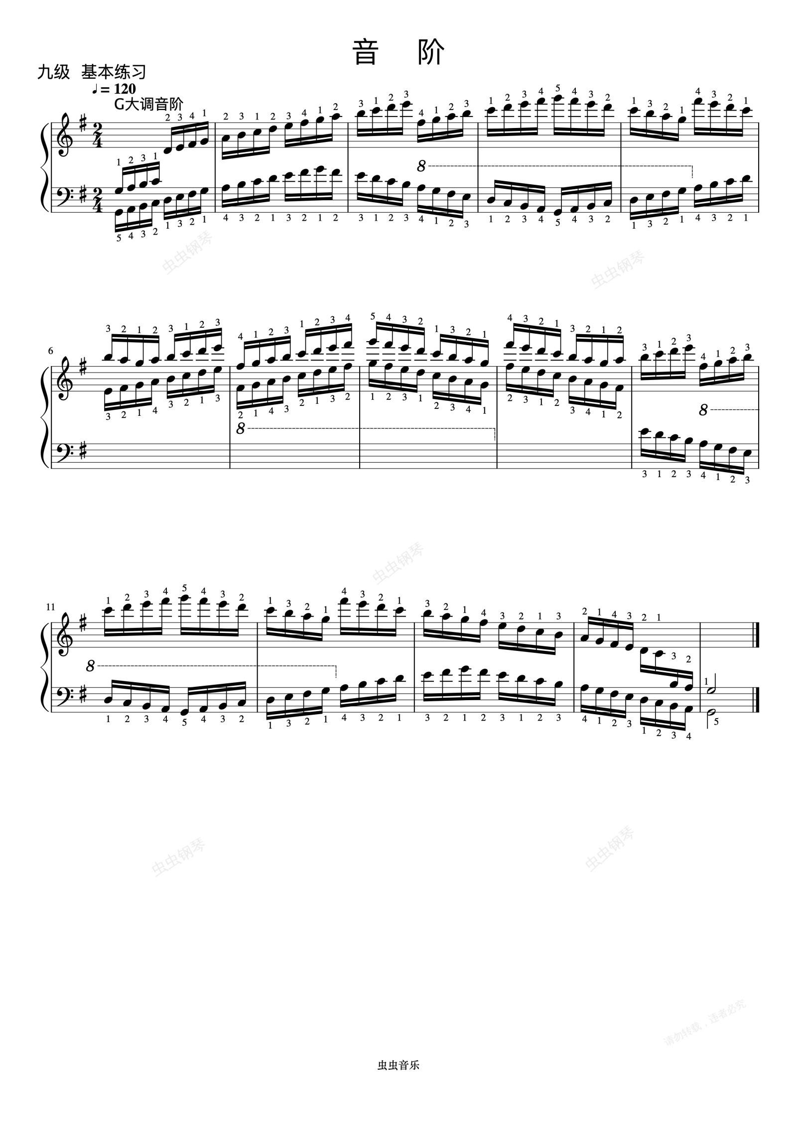 钢琴谱: G大调音阶《 ZYY 钢琴考级曲目 7》