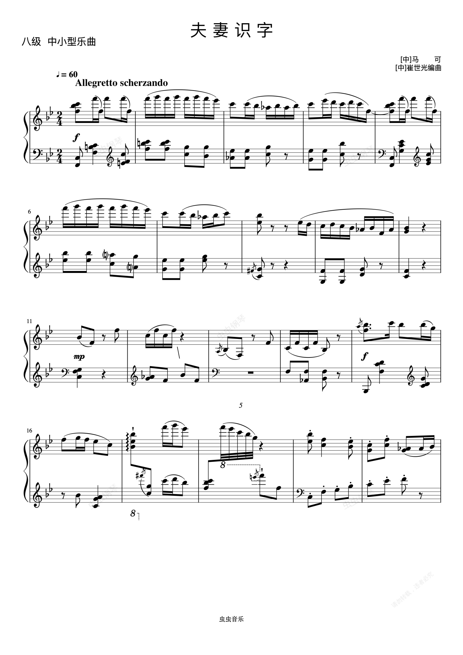钢琴谱: 夫妻识字《 ZYY 钢琴考级曲目 7》