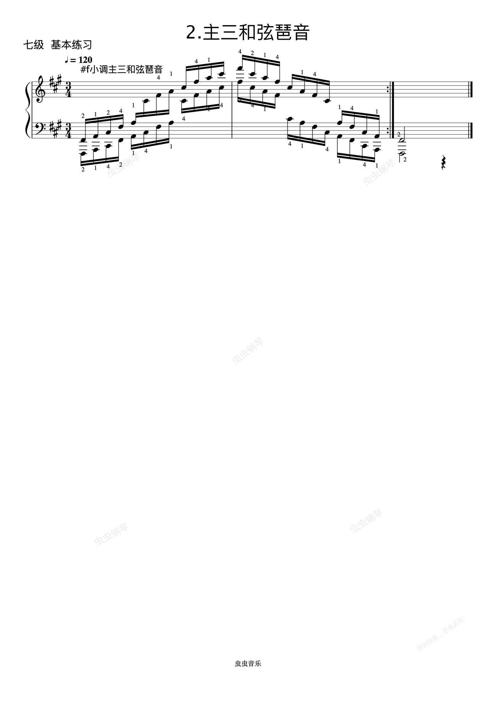 钢琴谱: 升f小调主三和弦琶音《 ZYY 钢琴考级曲目 7》