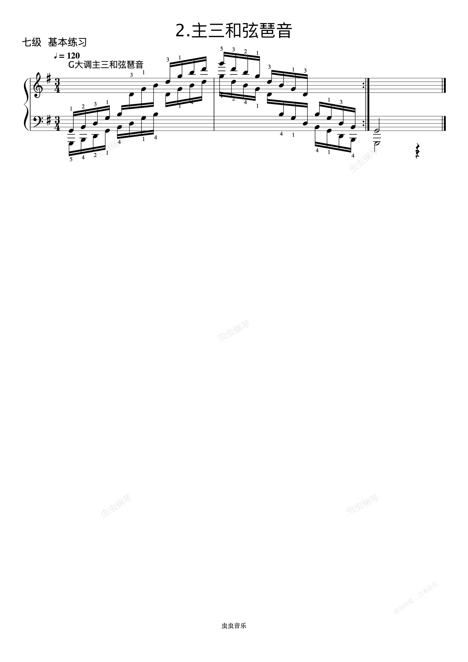 钢琴谱: G大调主三和弦琶音《 ZYY 钢琴考级曲目 7》
