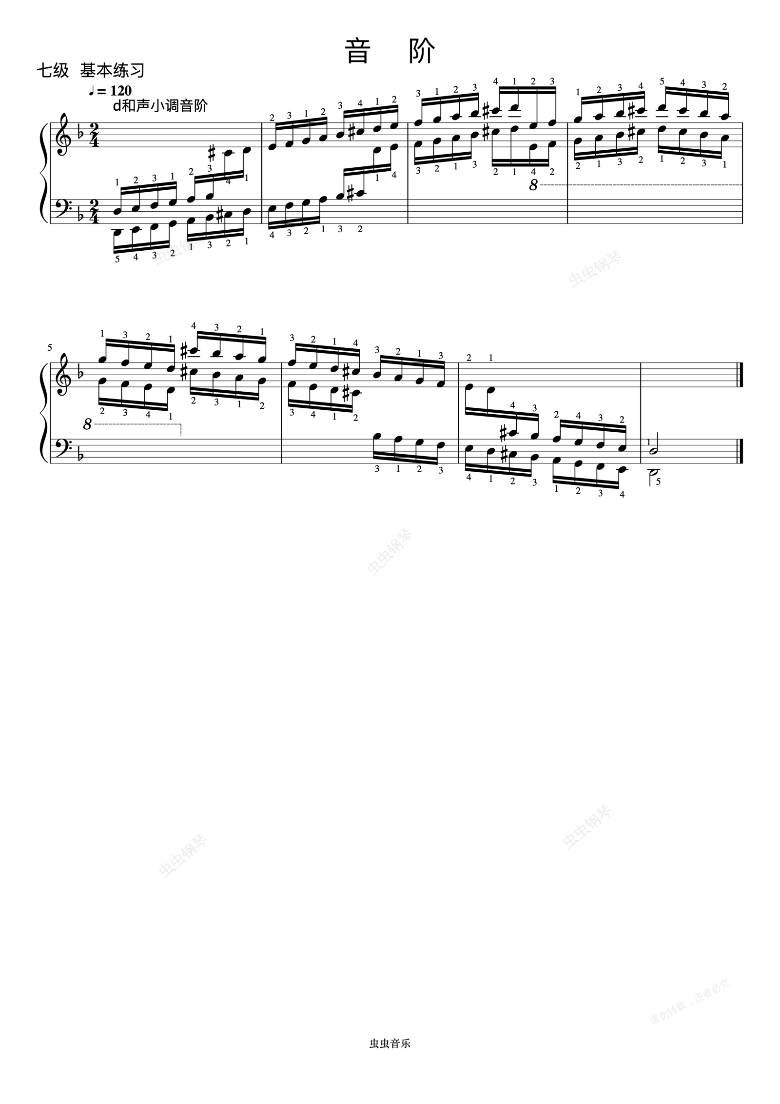 钢琴谱: d和声小调音阶《 ZYY 钢琴考级曲目 7》