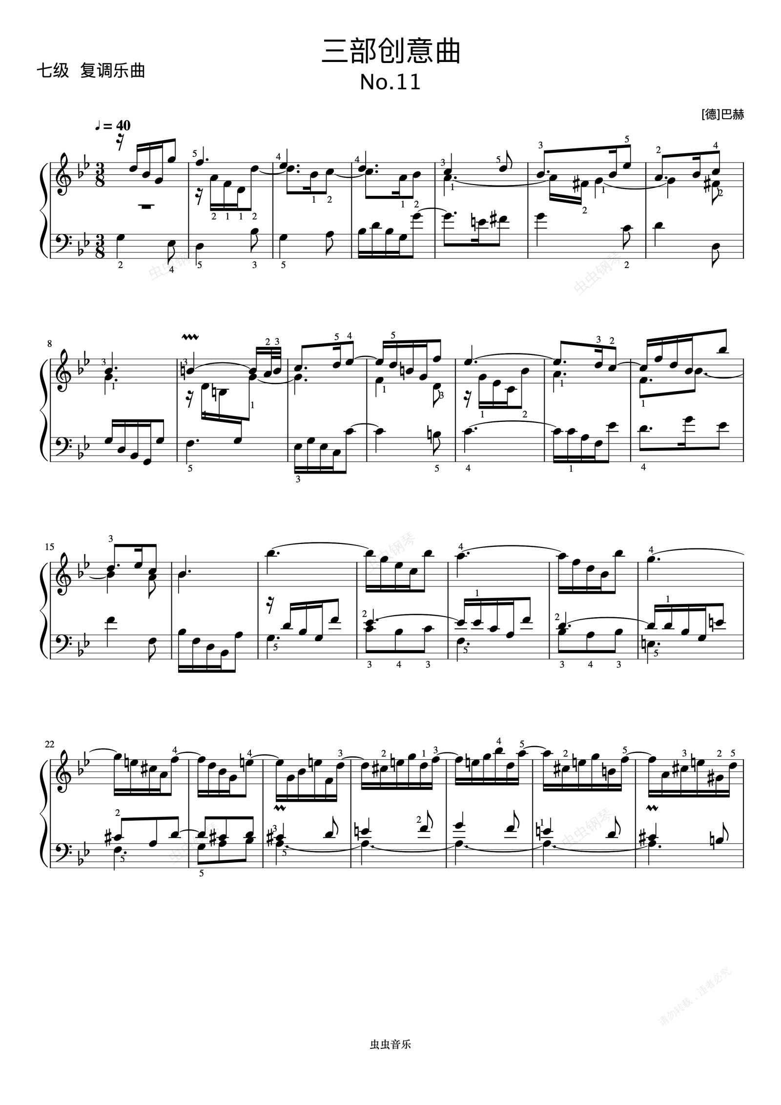 钢琴谱: 三部创意曲(No.11)《 ZYY 钢琴考级曲目 7》
