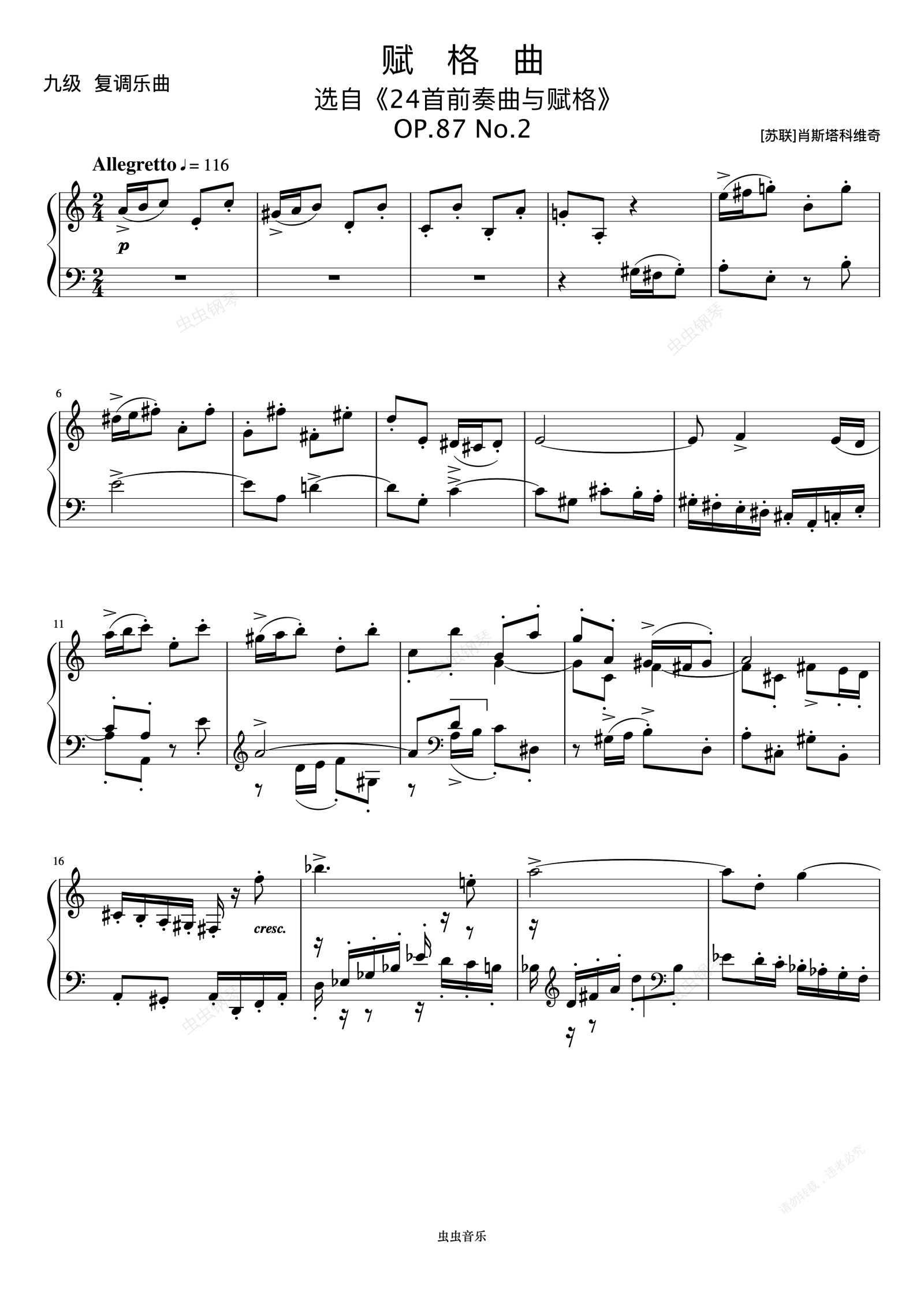 钢琴谱: 赋格曲 Op.87 No.2《 ZYY 钢琴考级曲目 7》