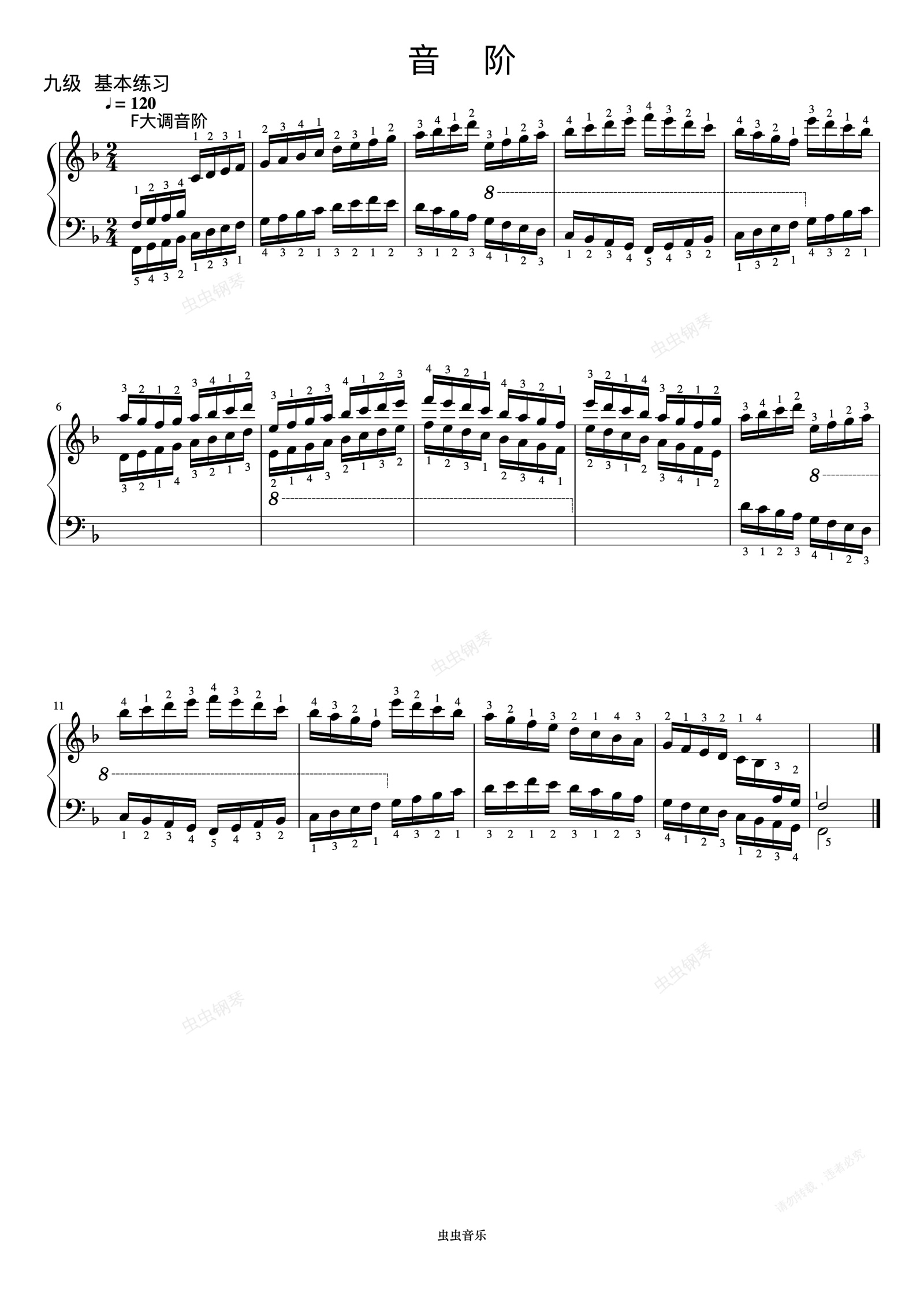钢琴谱: F大调音阶《 ZYY 钢琴考级曲目 7》
