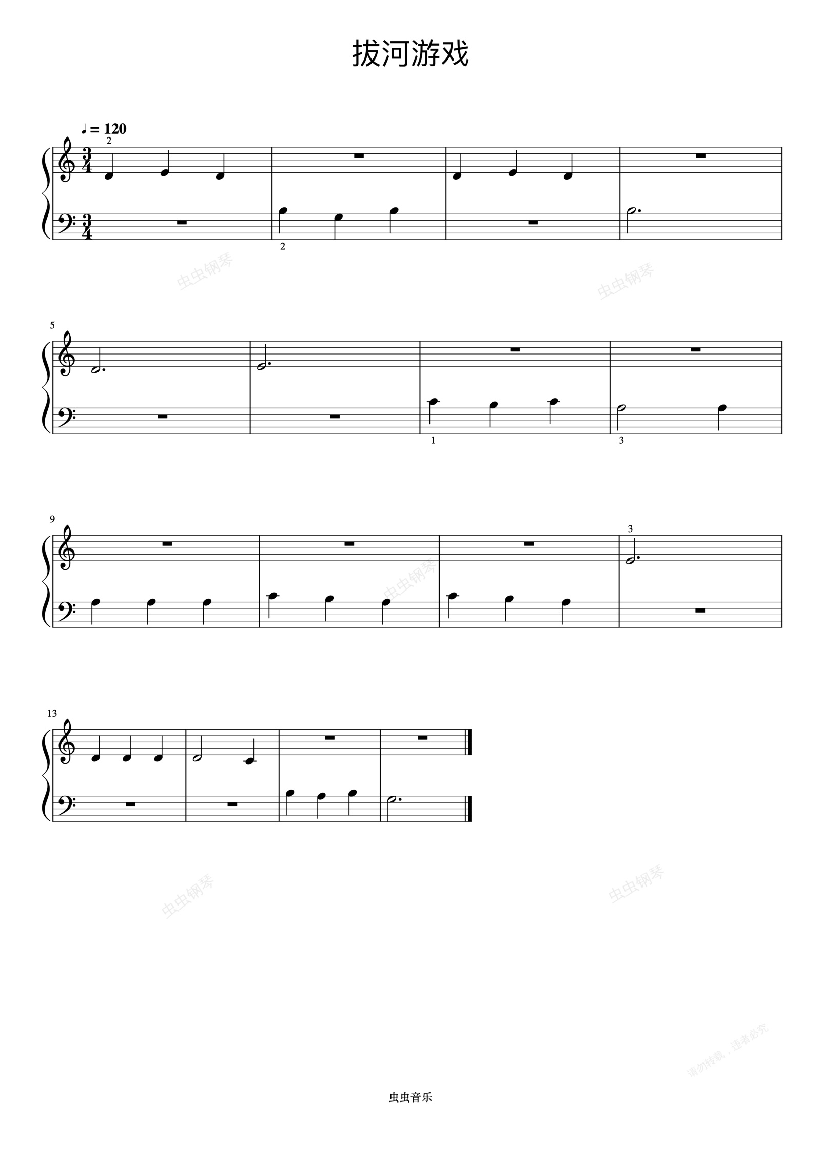 钢琴谱:拔河游戏《约翰汤普森 简易钢琴教程 1》