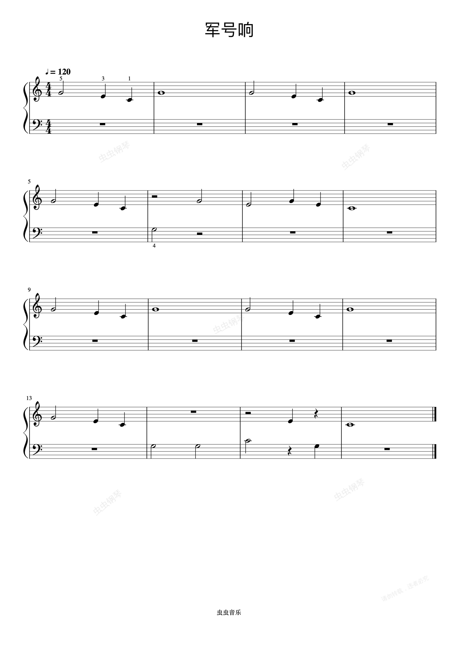 钢琴谱:军号响《约翰汤普森 简易钢琴教程 1》