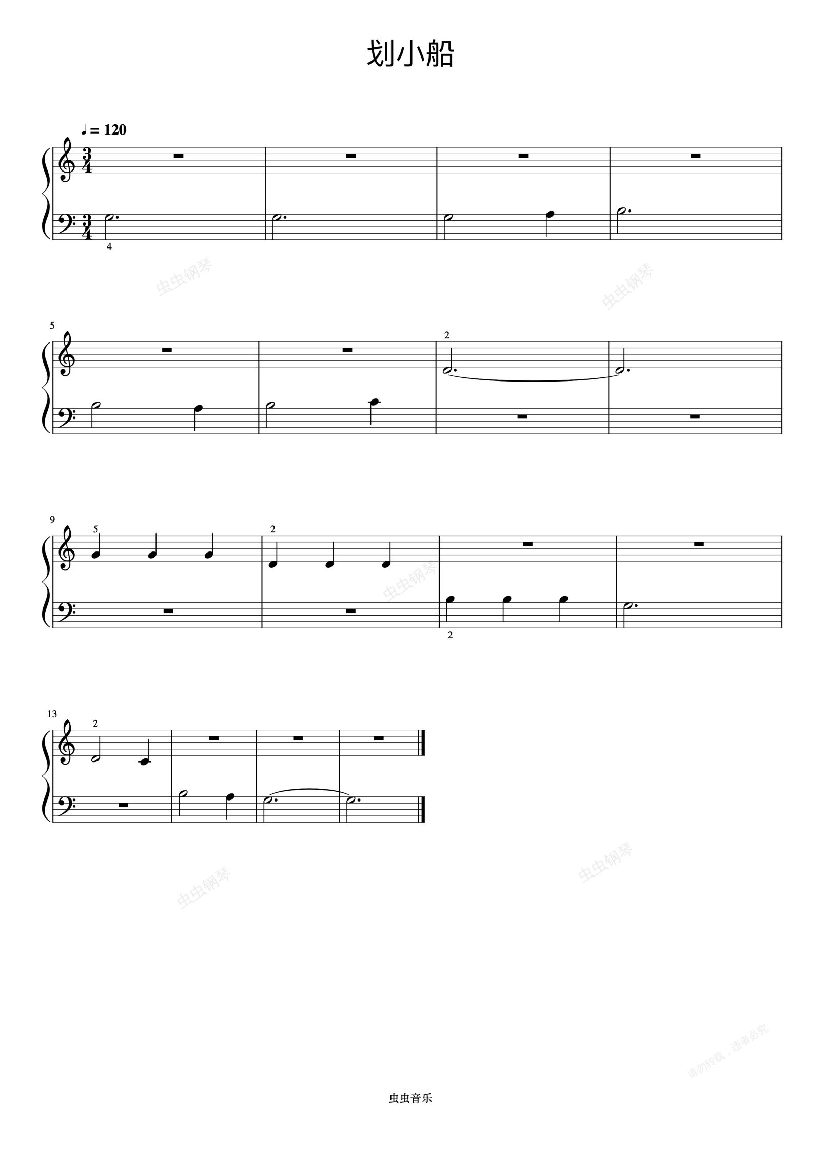 钢琴谱:划小船《约翰汤普森 简易钢琴教程 1》