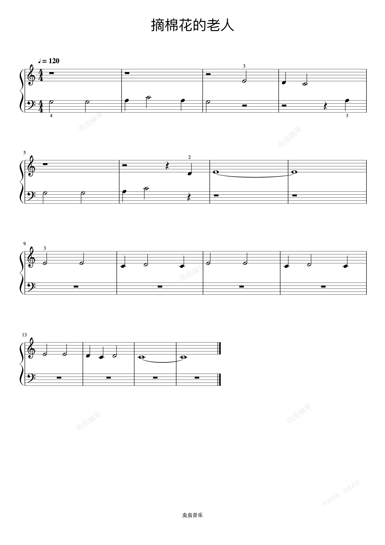 钢琴谱:摘棉花的老人《约翰汤普森 简易钢琴教程 1》