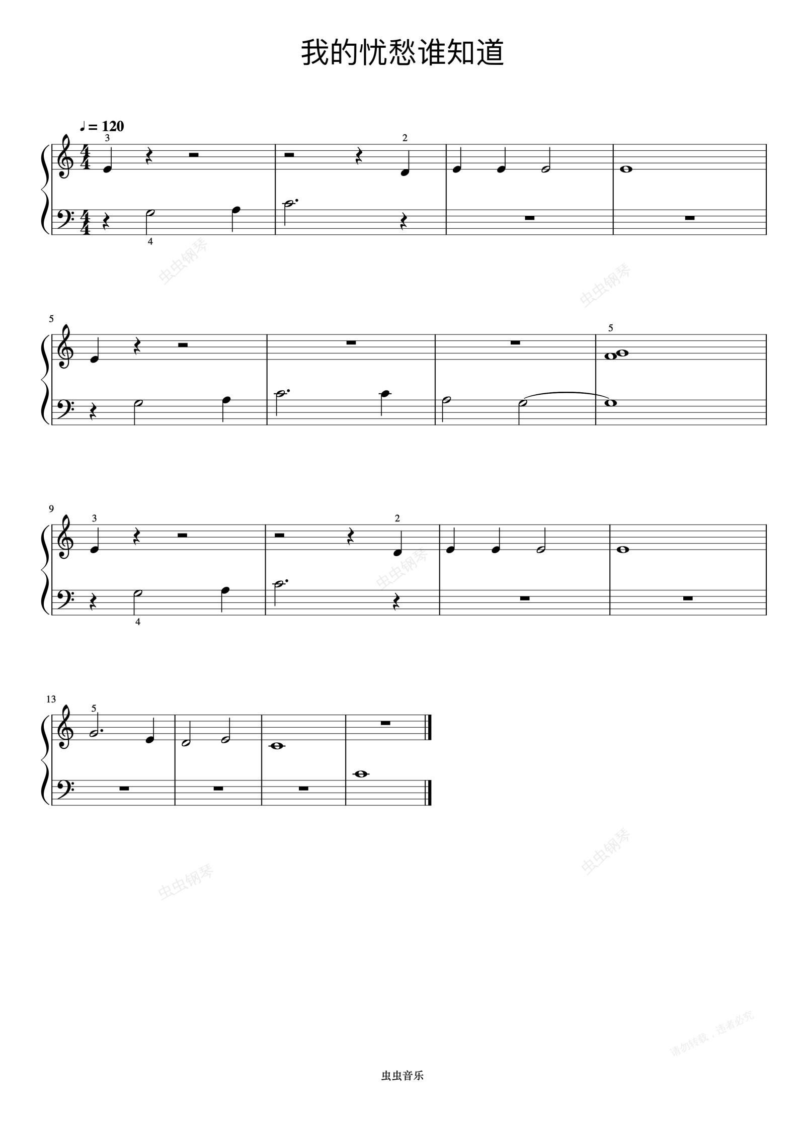 钢琴谱:我的忧愁谁知道《约翰汤普森 简易钢琴教程 1》