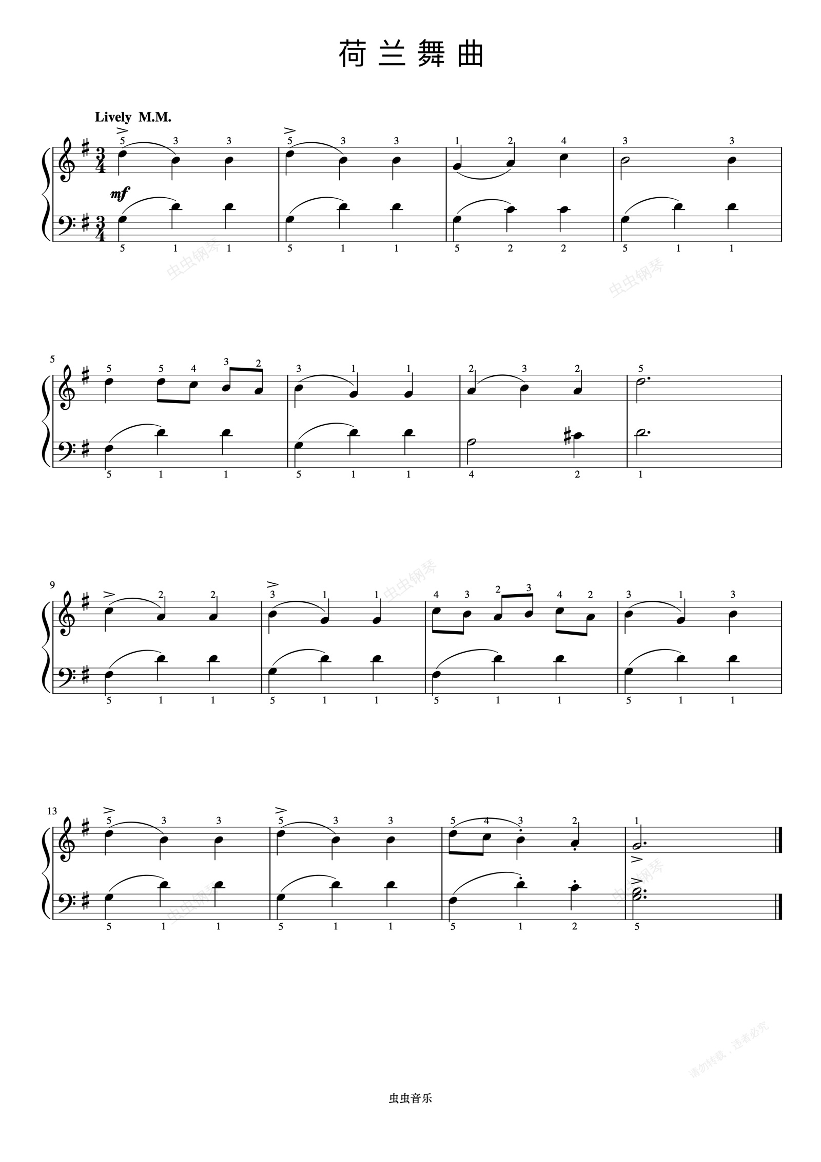 钢琴谱:荷兰舞曲《约翰汤普森 现代钢琴教程1》