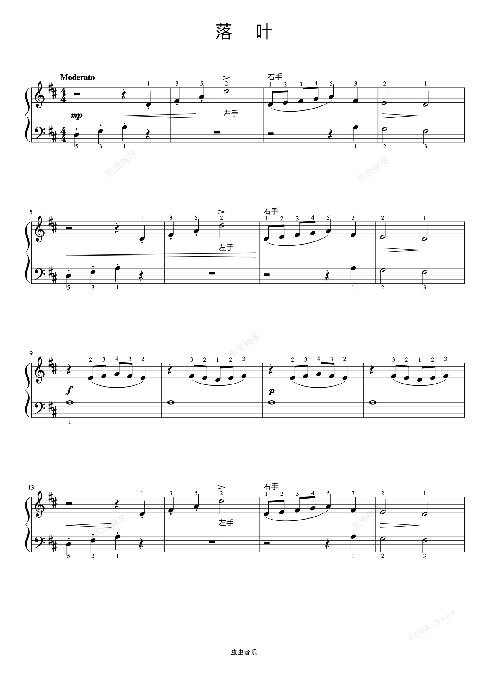 钢琴谱:落叶《约翰汤普森 现代钢琴教程1》