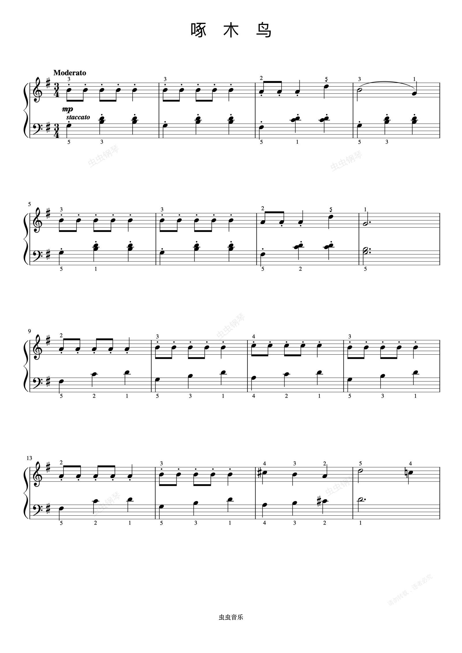 钢琴谱:啄木鸟《约翰汤普森 现代钢琴教程1》